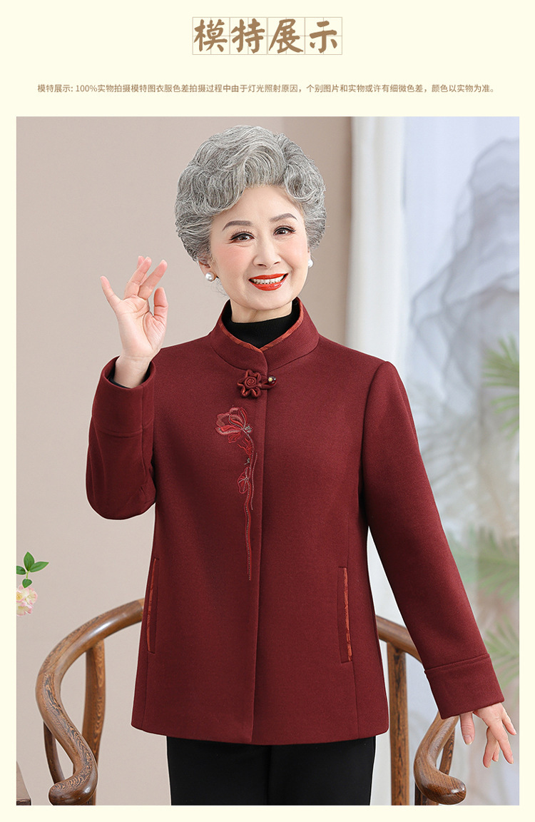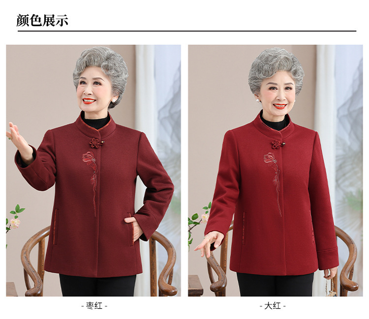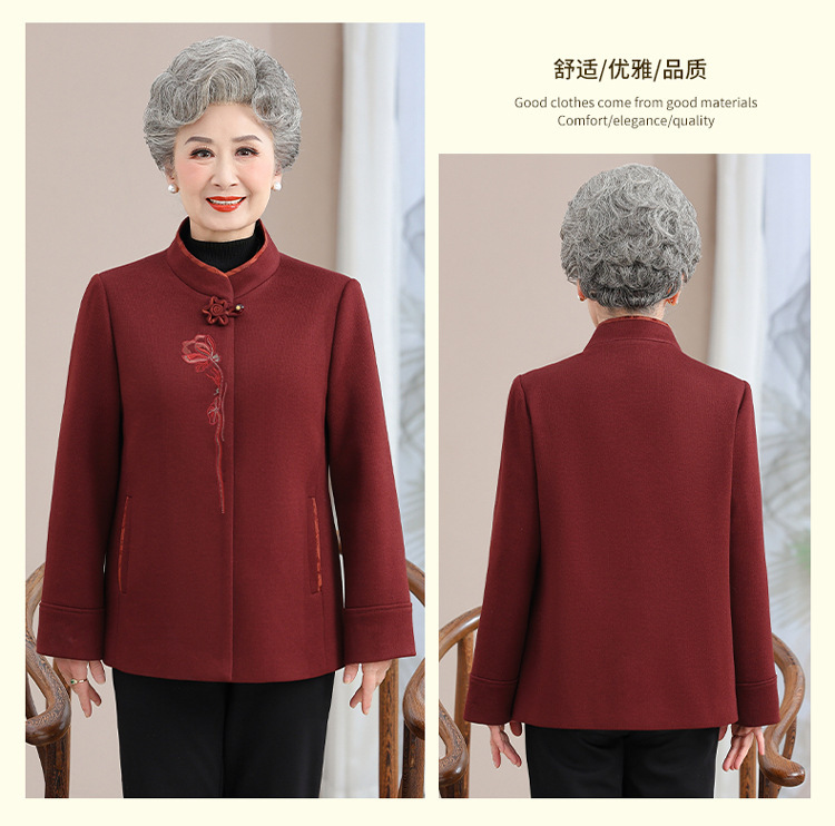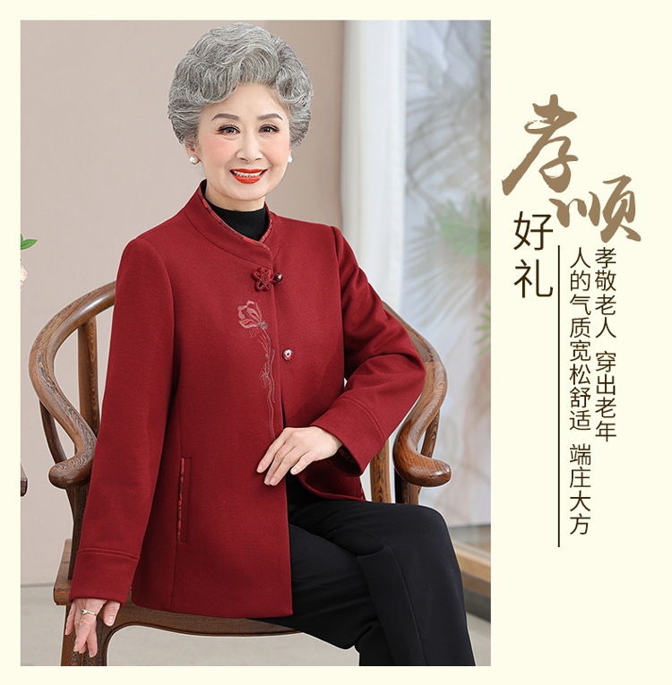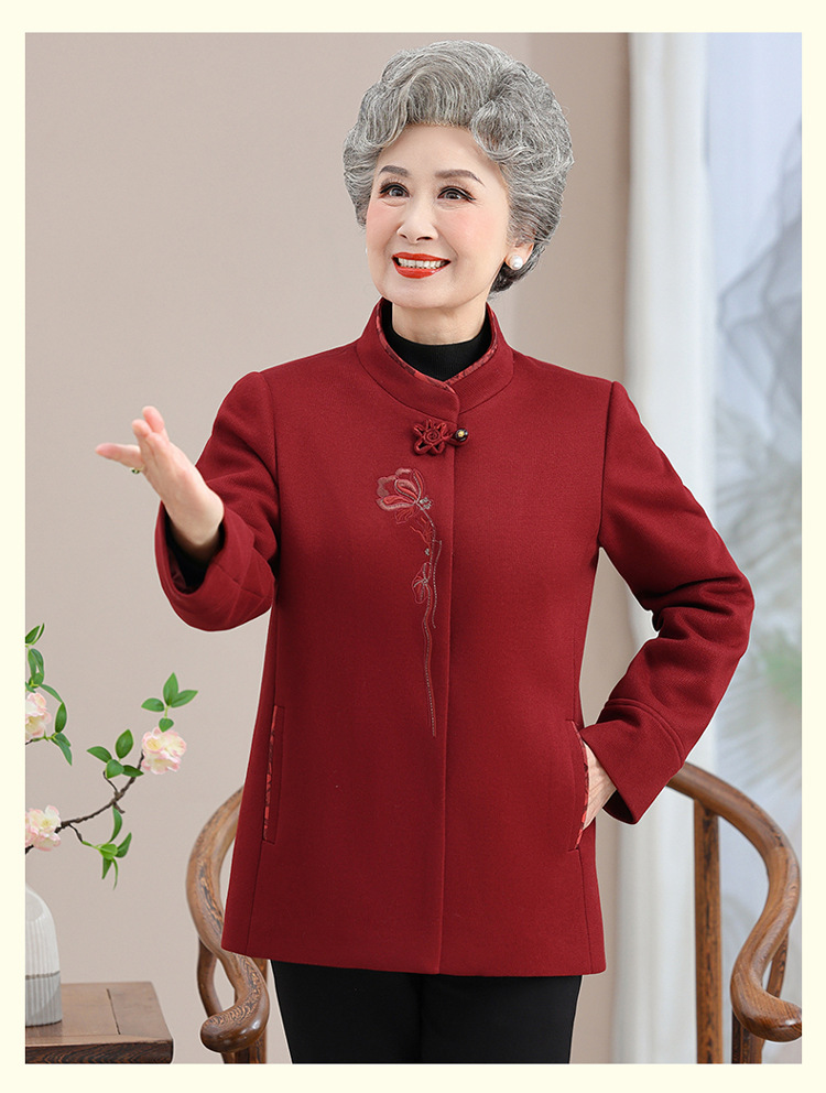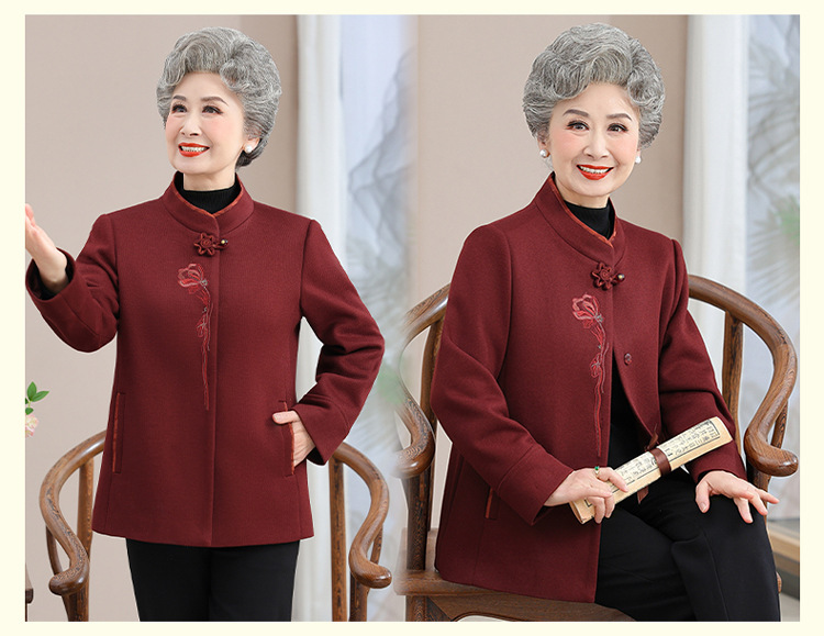 お年寄りのダウンジャケットの女性の短いタイプの本命年のお母さんの冬服の綿入れの上着の老人の唐服のおばあさんの冬の綿入れの上着