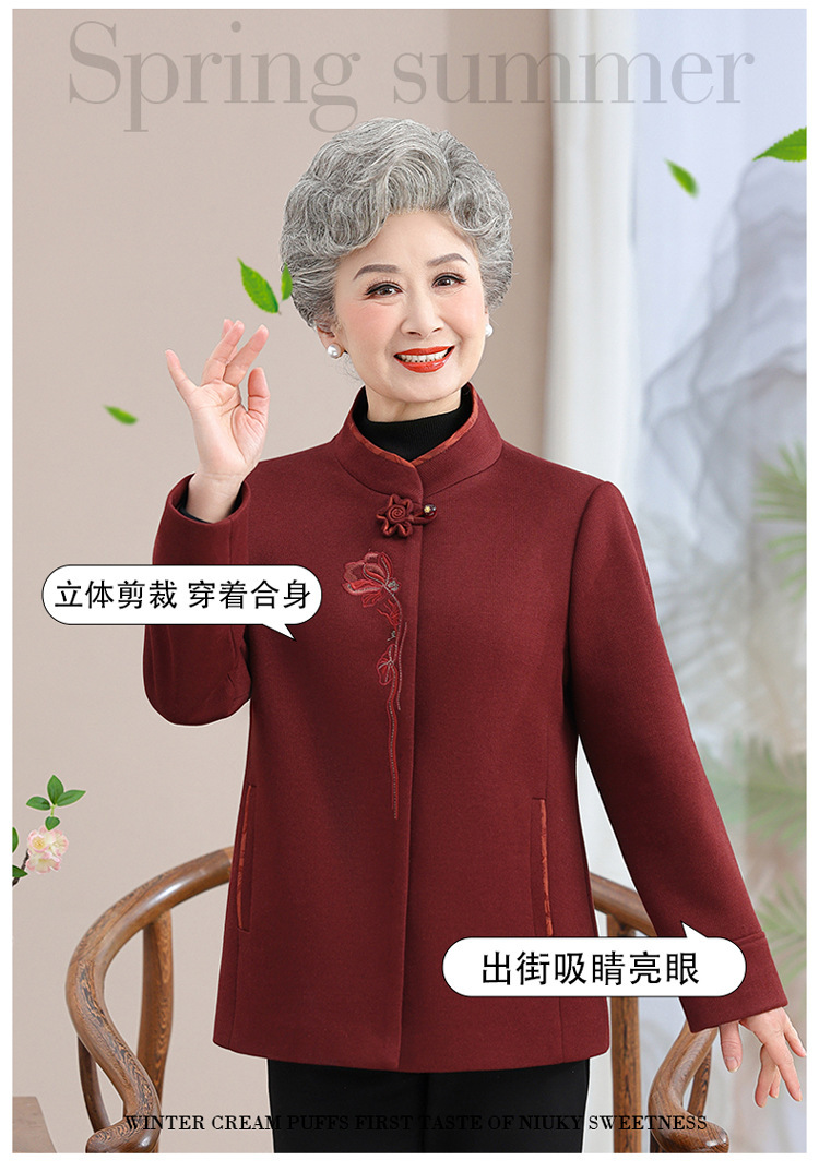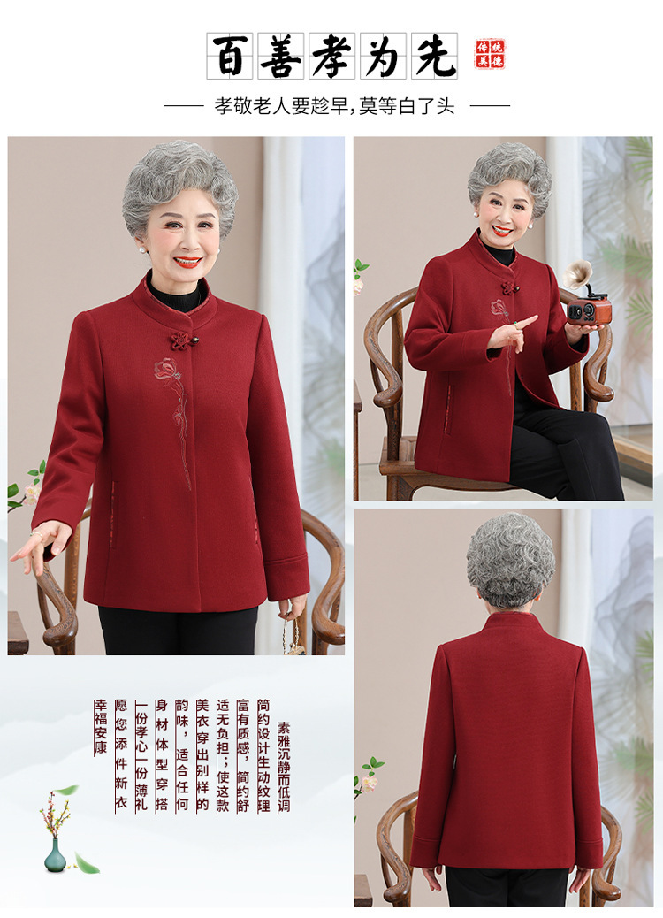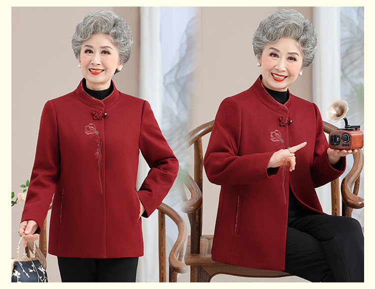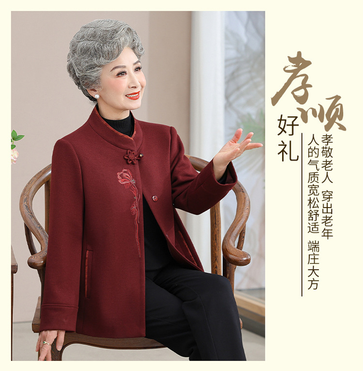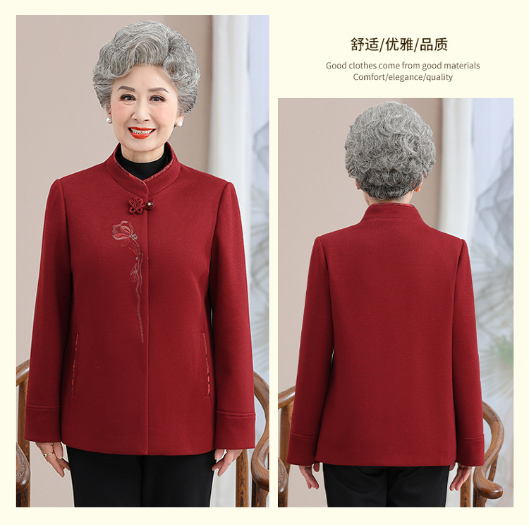 お年寄りのダウンジャケットの女性の短いタイプの本命年のお母さんの冬服の綿入れの上着の老人の唐服のおばあさんの冬の綿入れの上着