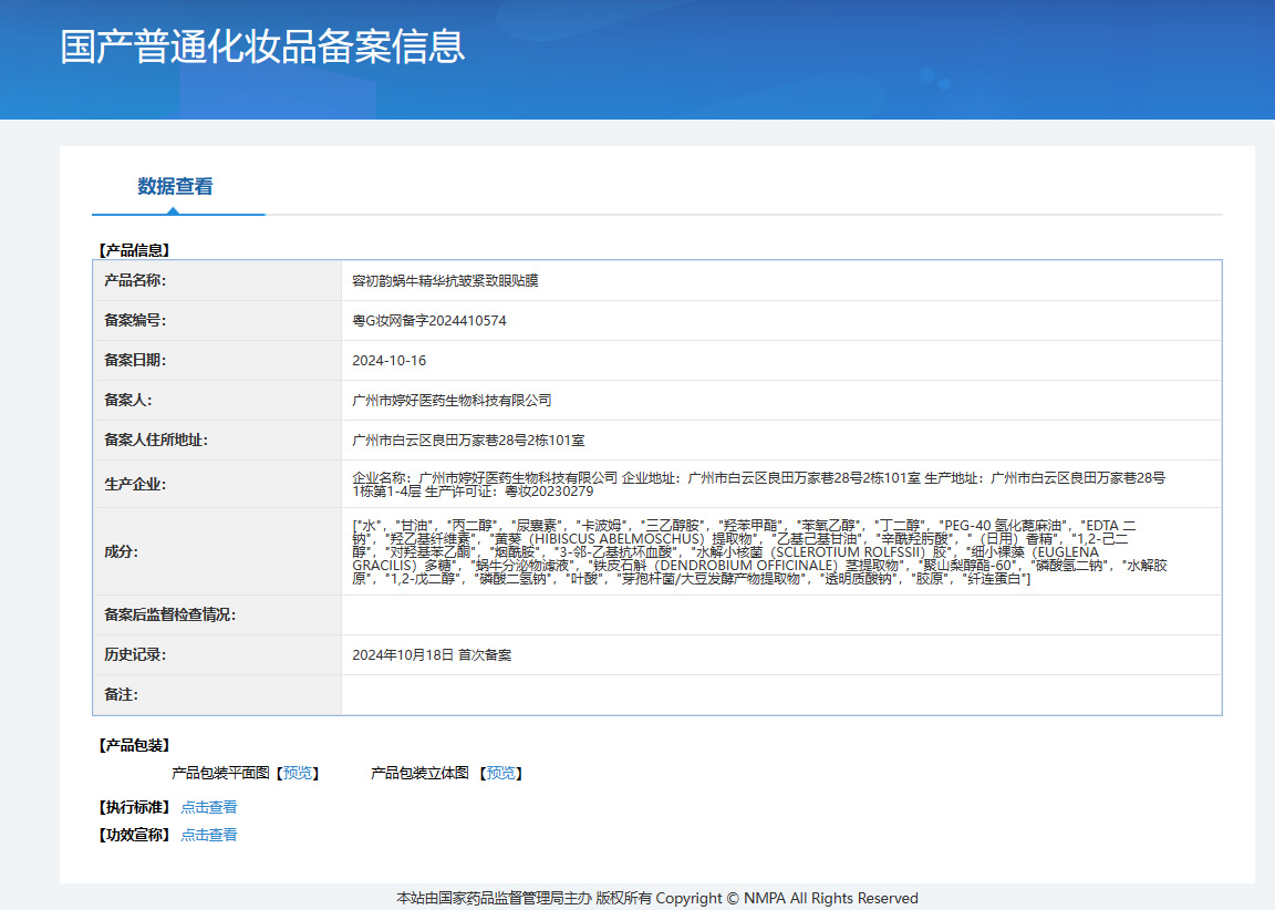正品容初韻カタツムリ精華抗シワ引き締めアイマスク目元保湿スキンケア品卸売り女性男性看護