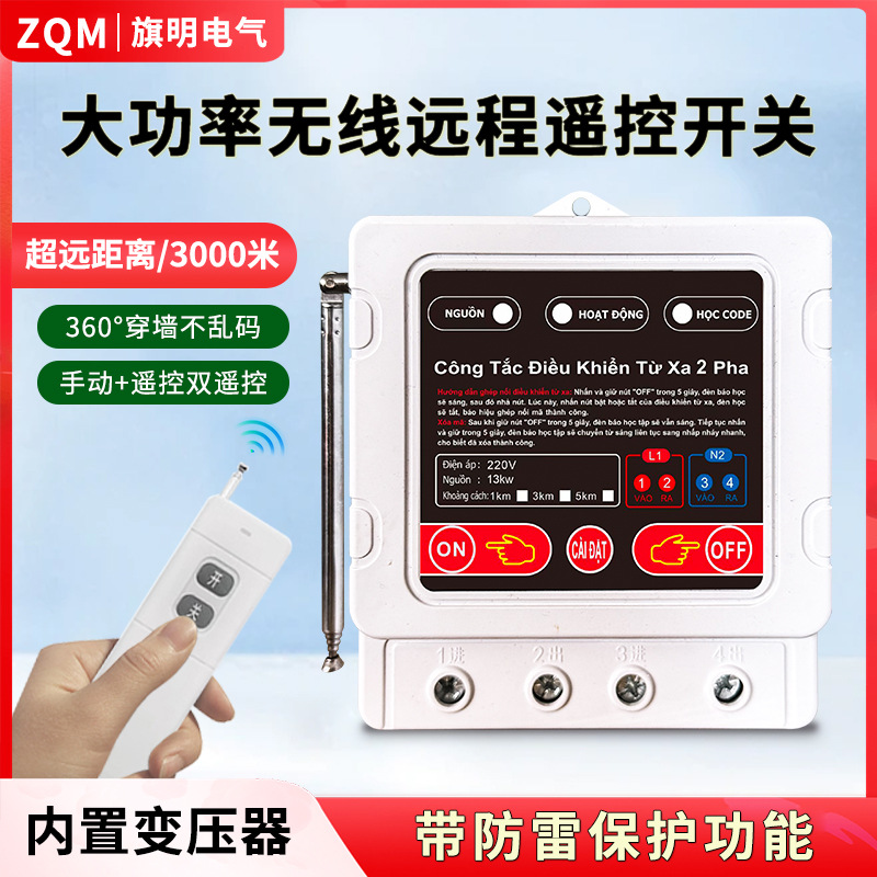 无线遥控开关220V大功率抽水泵电机增机遥控器远程电源控制器开关
