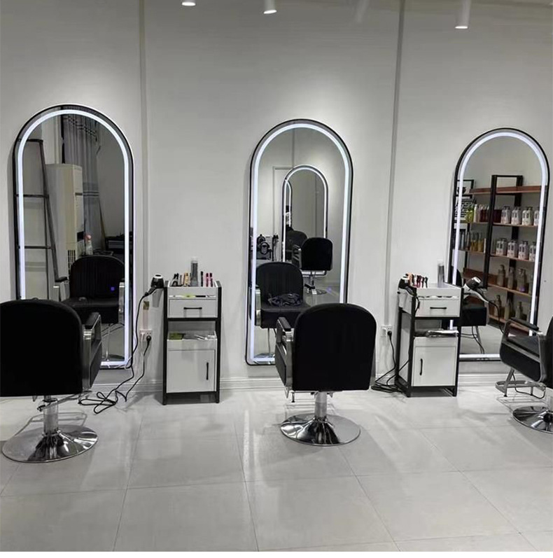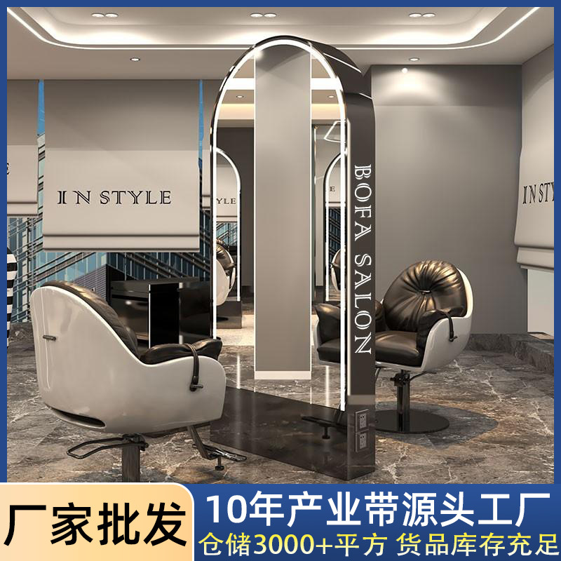 ネット赤理髪店鏡ギャラリー専用片面美髪鏡台壁掛け床置き鏡スマートLED発光鏡
