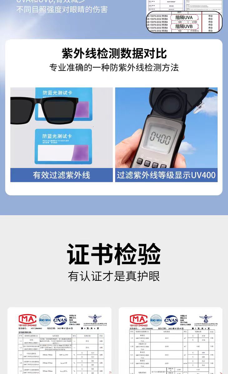 アンチブルーレイメガネテストカードセットツール検查レンズ偏光テストカード再使用小型テストライト