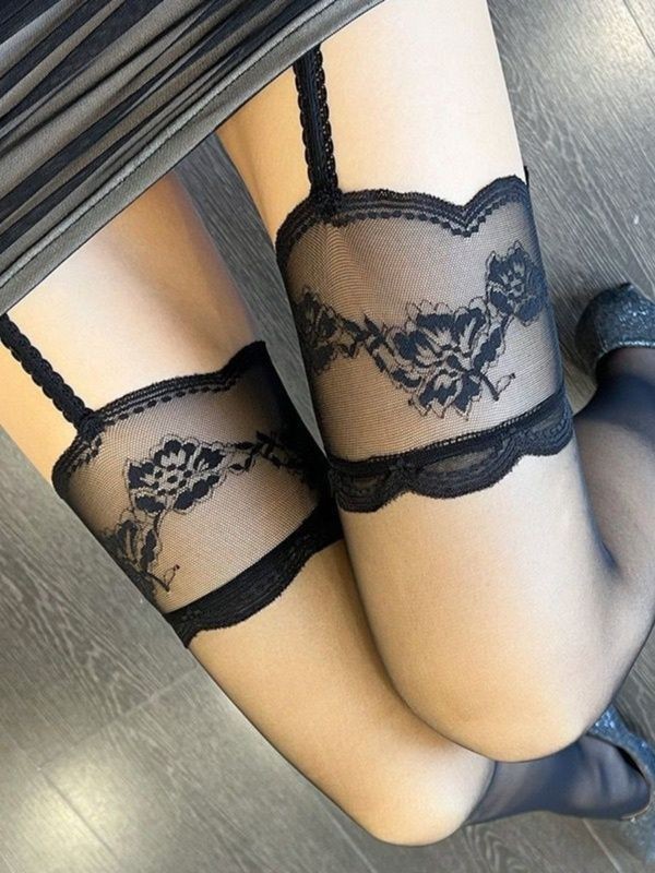 セクシーレースサスペンダーセクシーピュアディザイアオールインワンレースロングソックス3D薄型オープンサスペンダーニーハイストッキング
