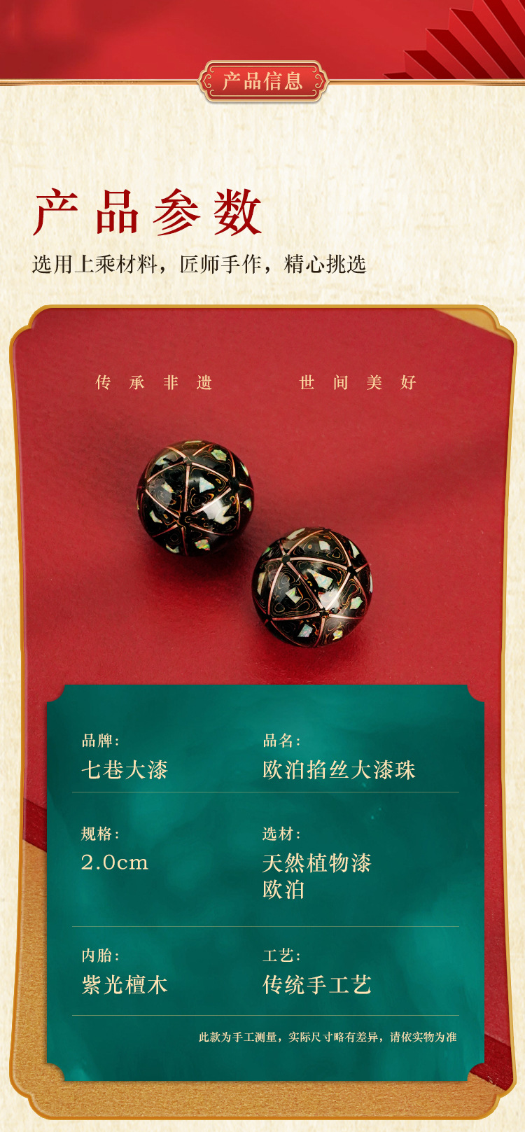七巷大漆珠単珠15螺散珠福州漆器木胎手串
