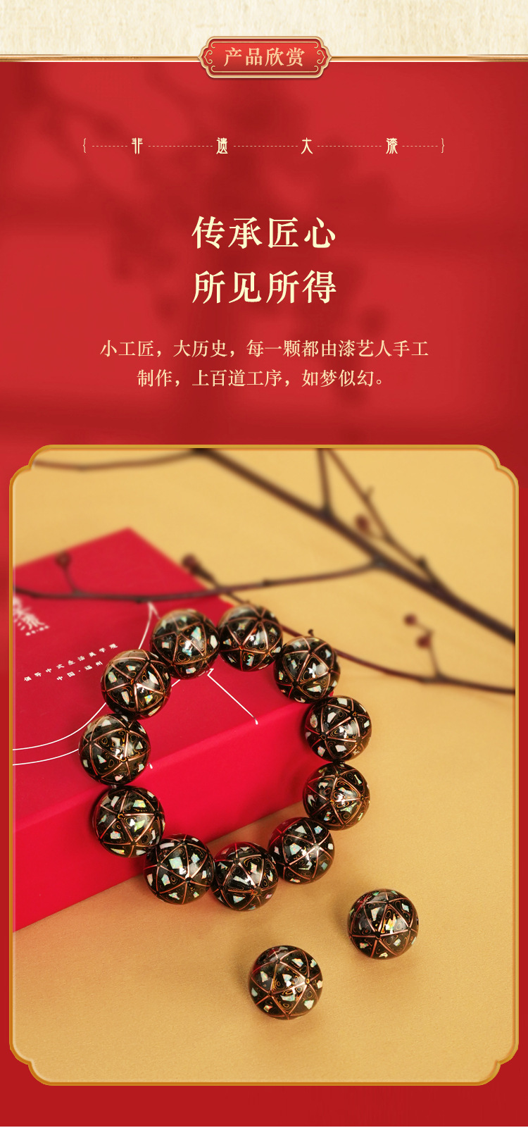 七巷大漆福州漆器単珠散珠18mmアクセサリー女性中国風手串プレゼント非遺品手工芸品