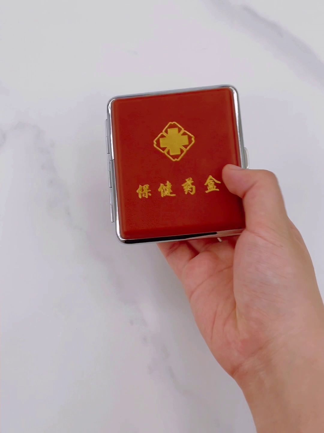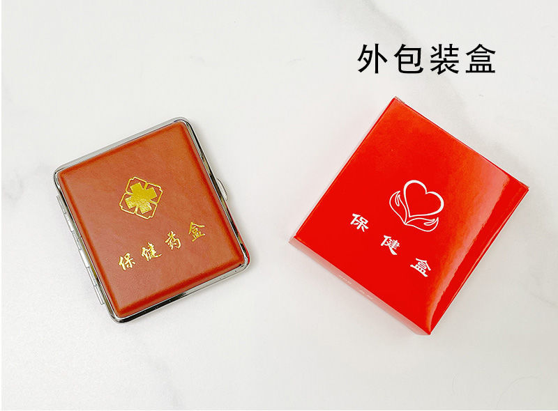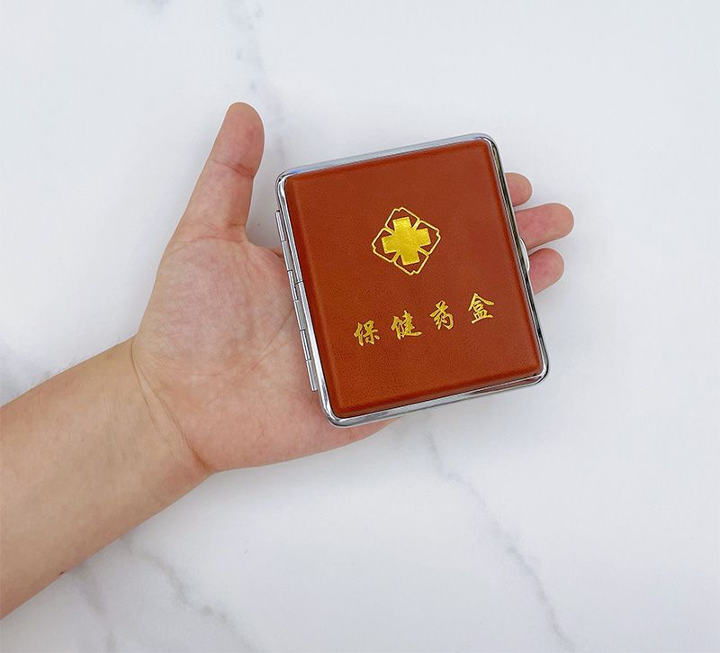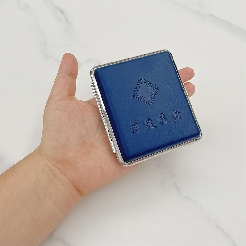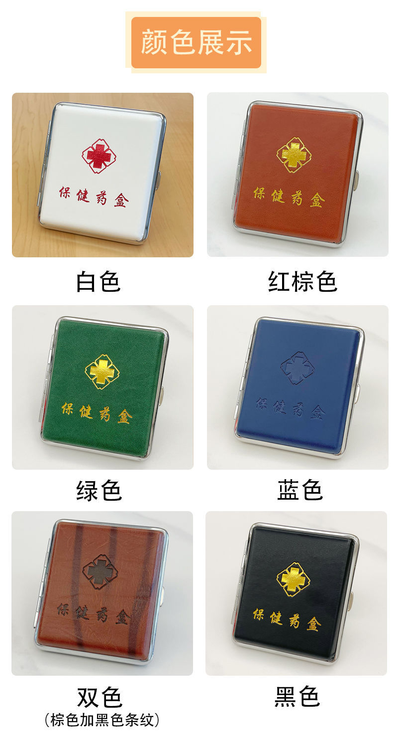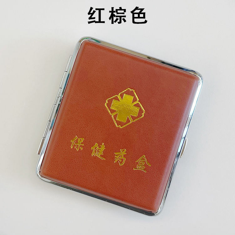 中老年人常见病随身迷你便携密封应急提醒仿皮金属避光小药盒