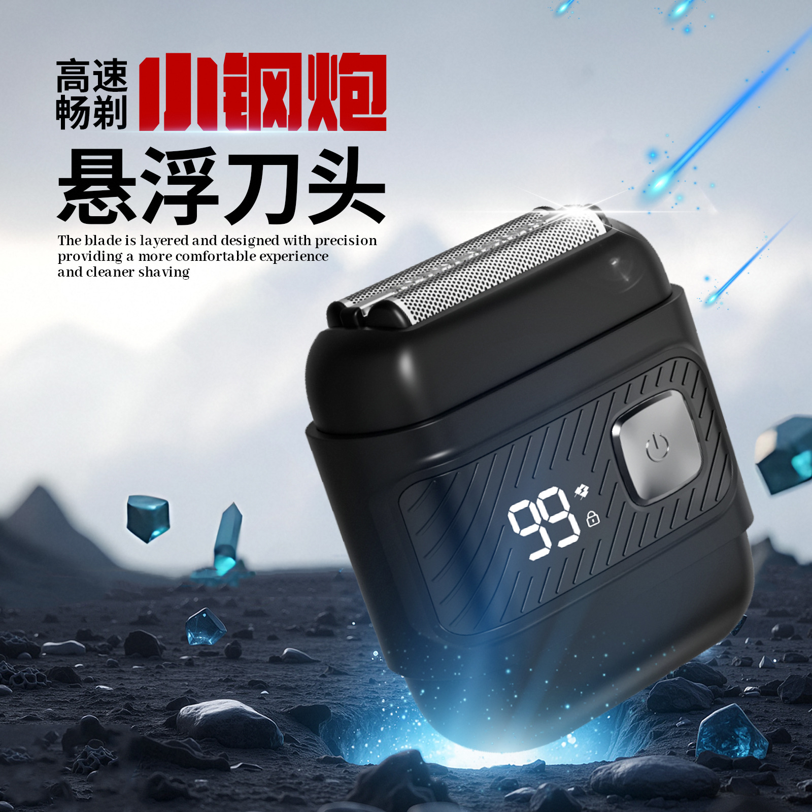 迷你往复式电动剃须刀电显磁吸三刀头快充车载家用小方盒胡须刀