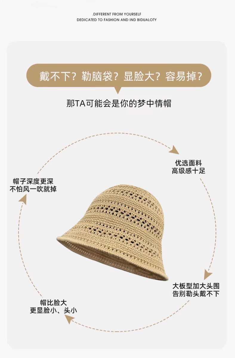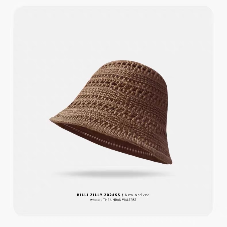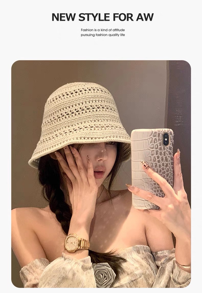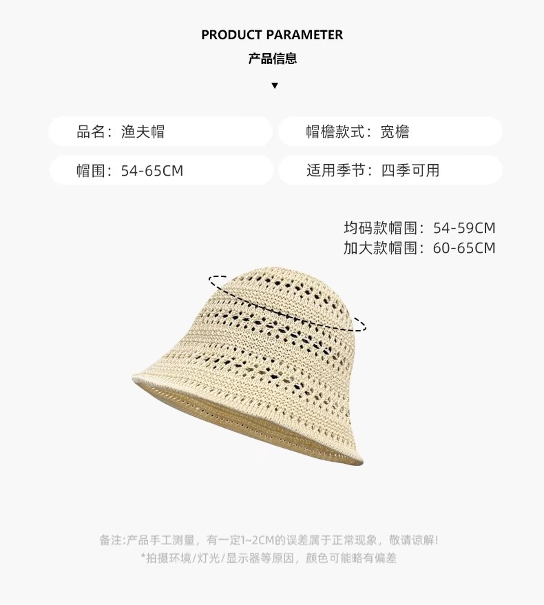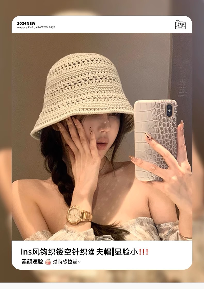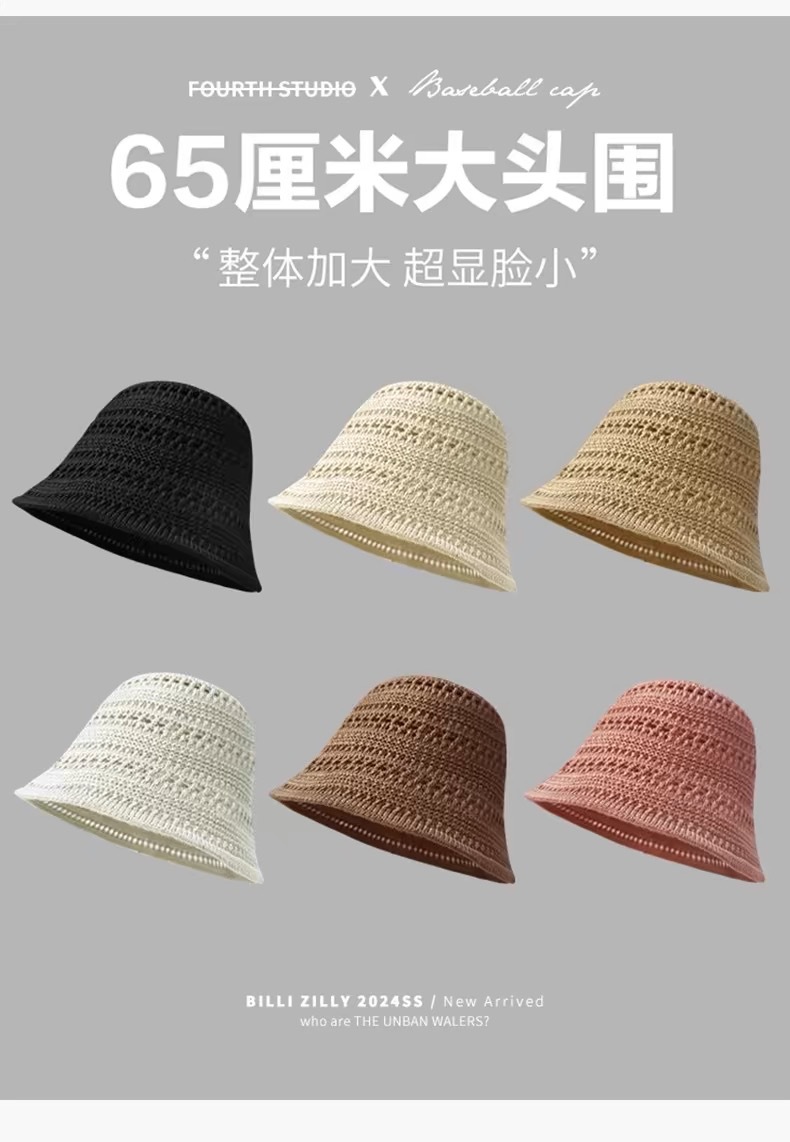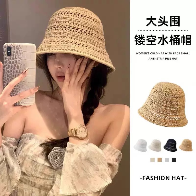 透かし編みの漁師の帽子の子供2025の新型の日本のバケツの帽子insの文芸の薄い金の通気性のかぎ針の盆の帽子