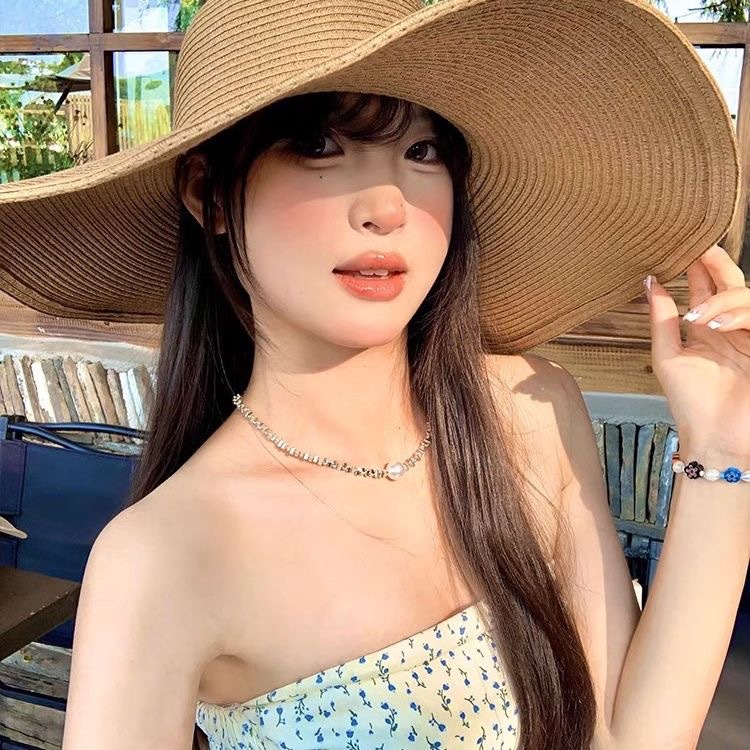 2025 新しいフレンチフラットトップ麦わら帽子女性のための大きな頭の周り海辺のビーチ帽子織日焼け止め太陽の帽子夏