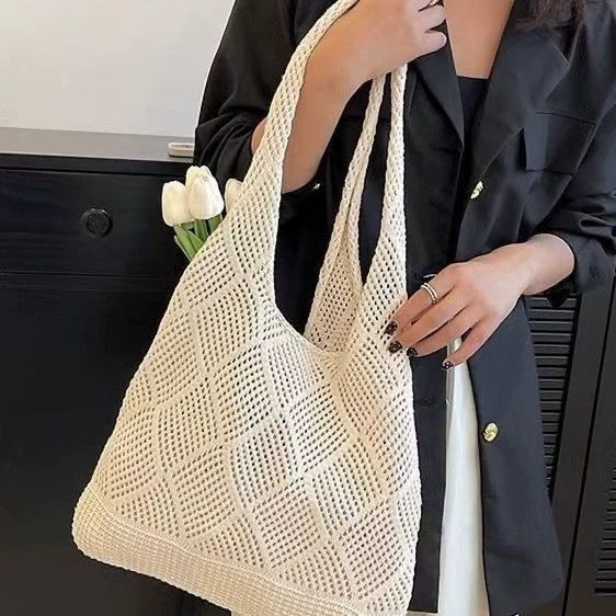 2025大容量编织单肩腋下包托特包女新款夏季海边休闲度假学院包
