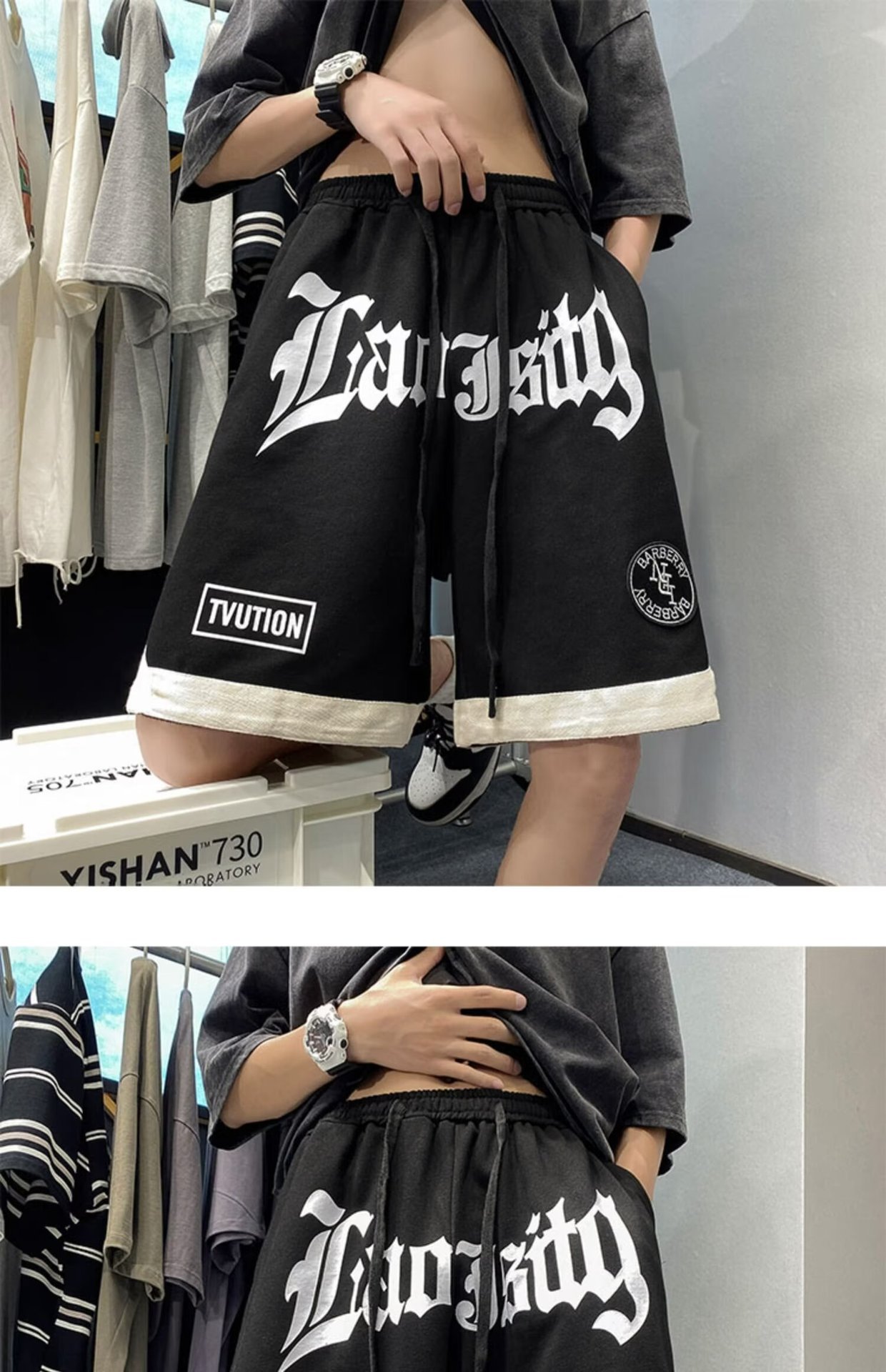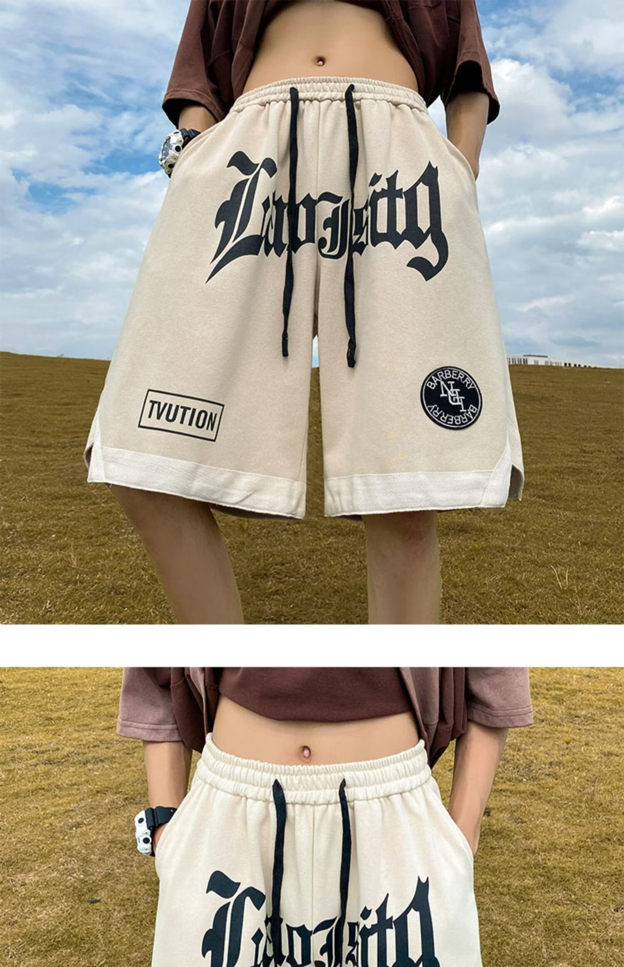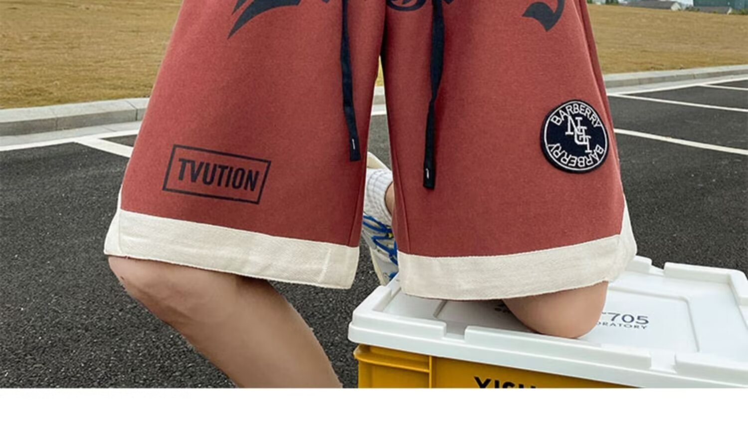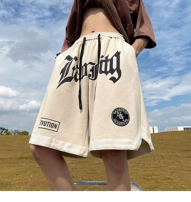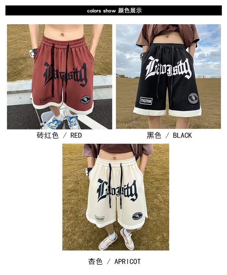 夏の薄いタイプのカジュアルな男性のアメリカのレトロな高街insの潮のブランドのゆったりしているカップルの5分の中でズボンの運動のショートパンツ