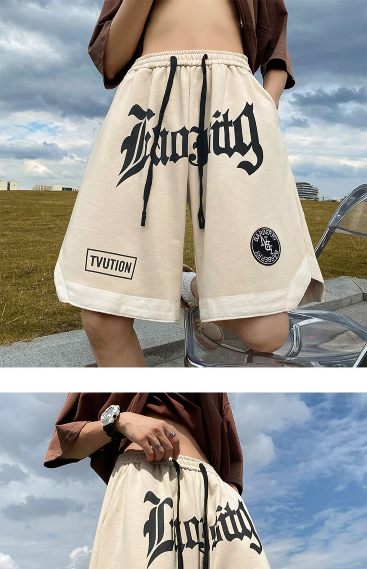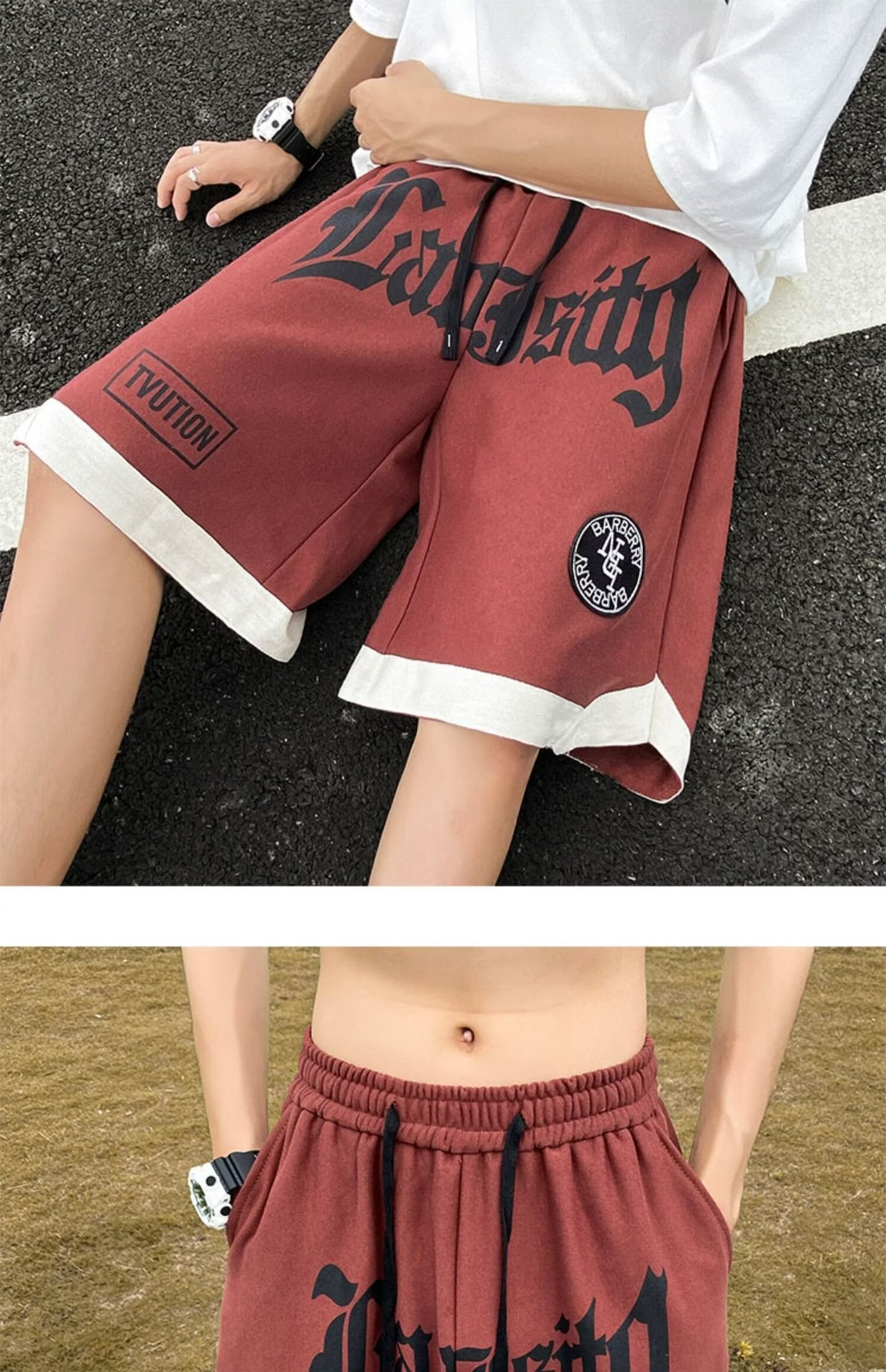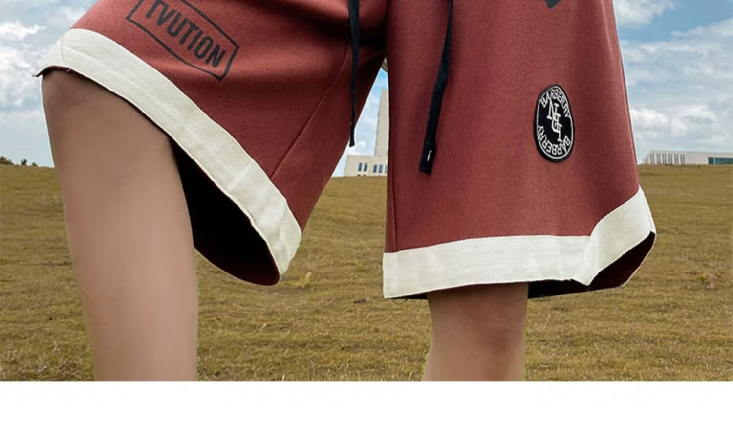 夏の薄いタイプのカジュアルな男性のアメリカのレトロな高街insの潮のブランドのゆったりしているカップルの5分の中でズボンの運動のショートパンツ