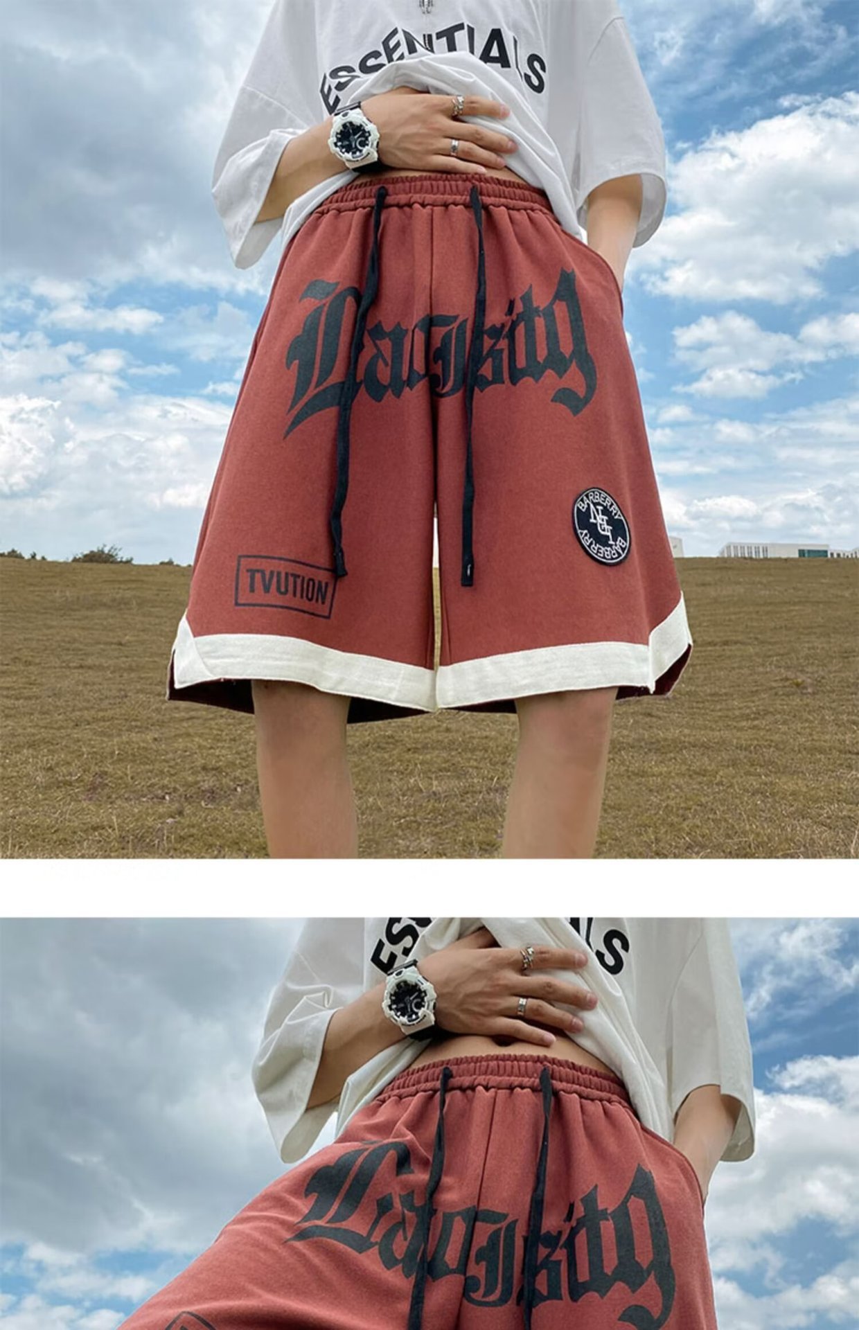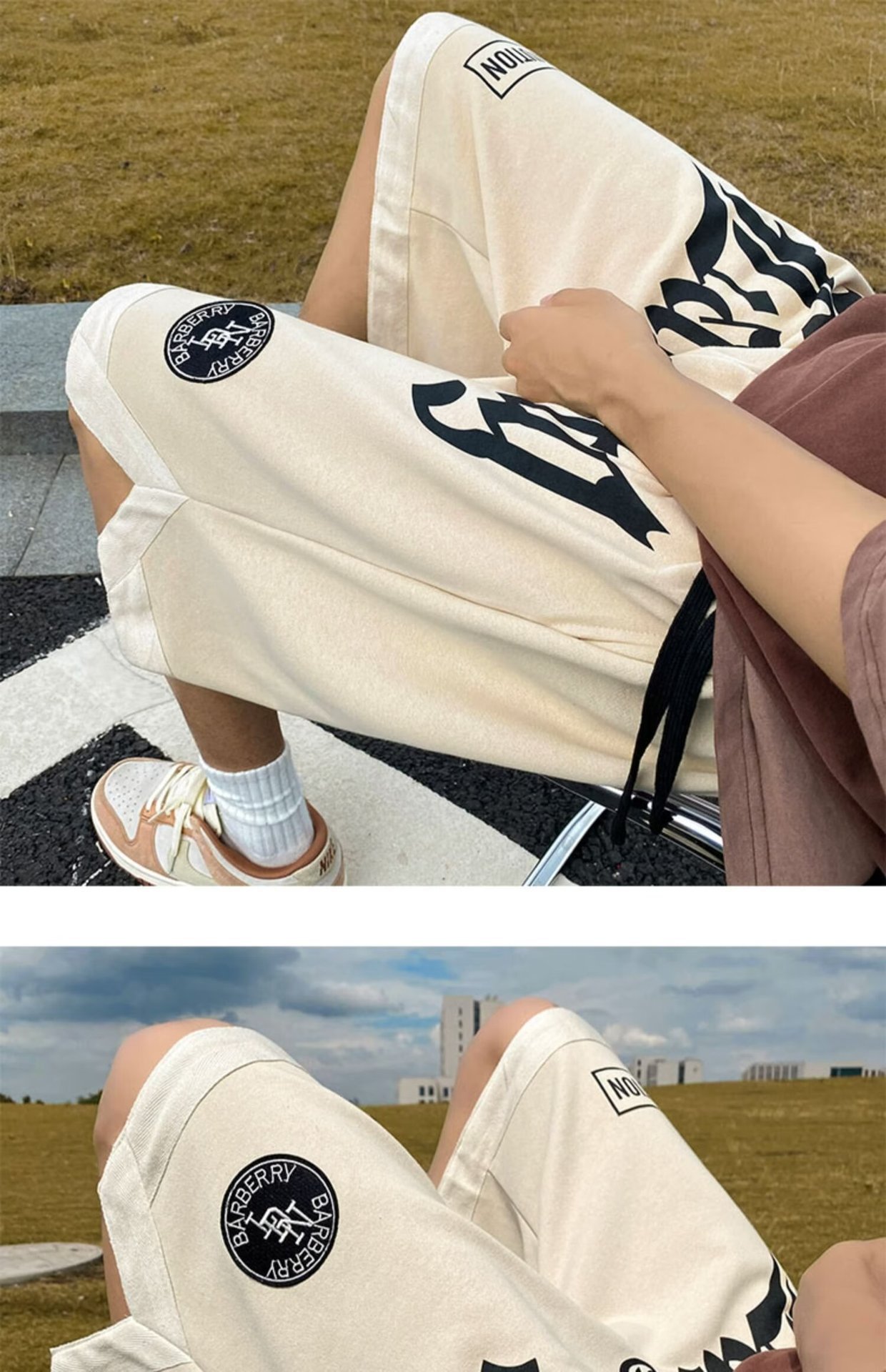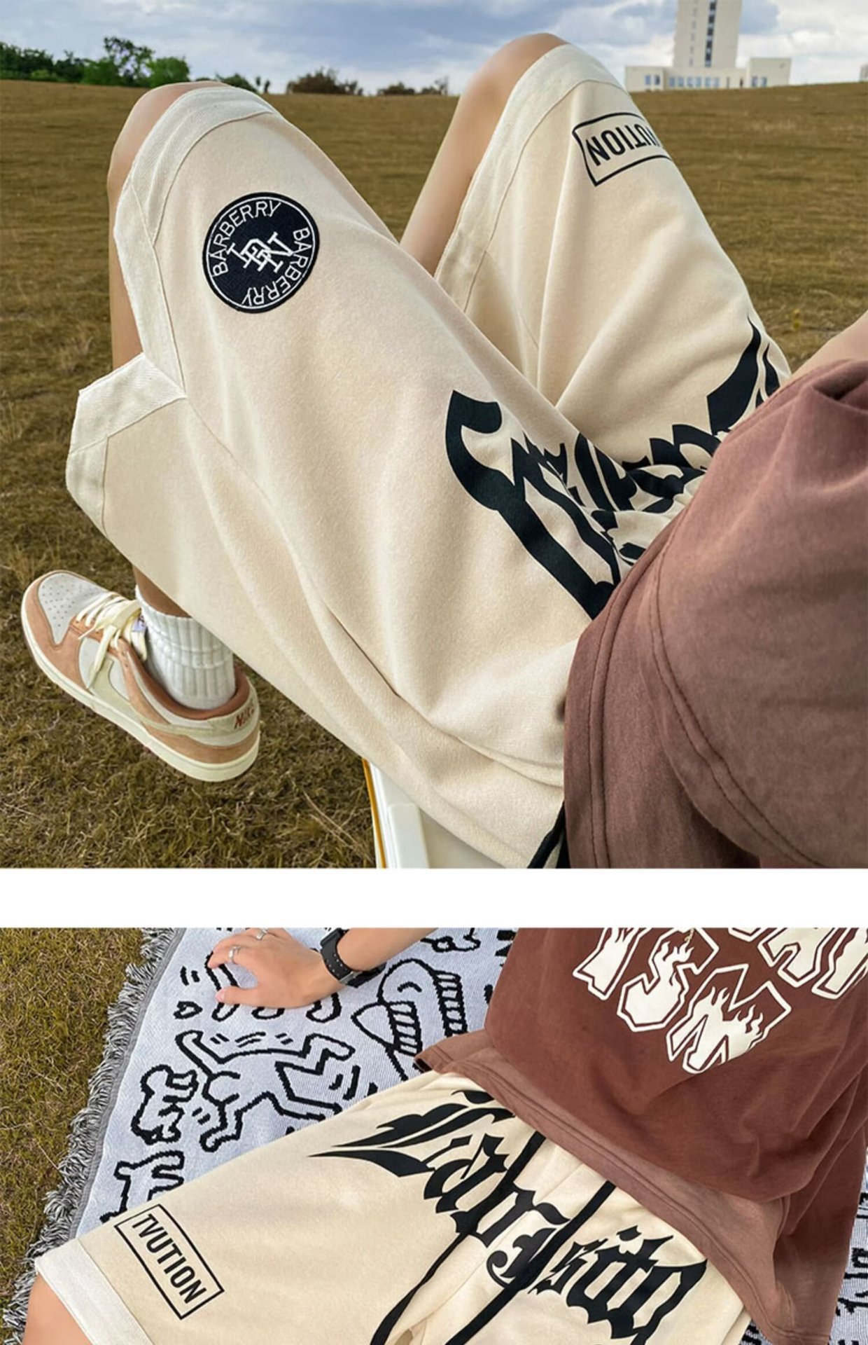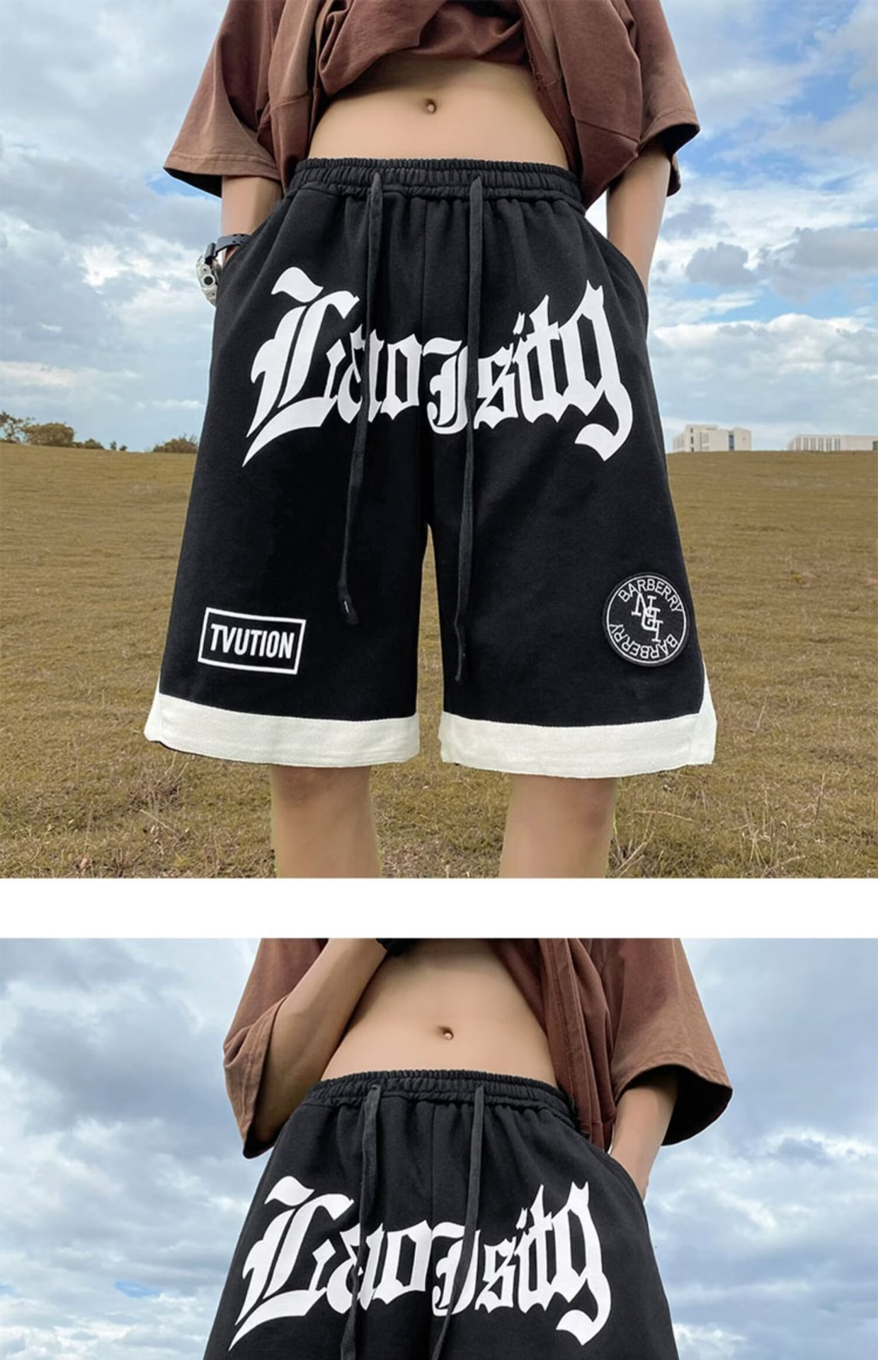 夏の薄いタイプのカジュアルな男性のアメリカのレトロな高街insの潮のブランドのゆったりしているカップルの5分の中でズボンの運動のショートパンツ