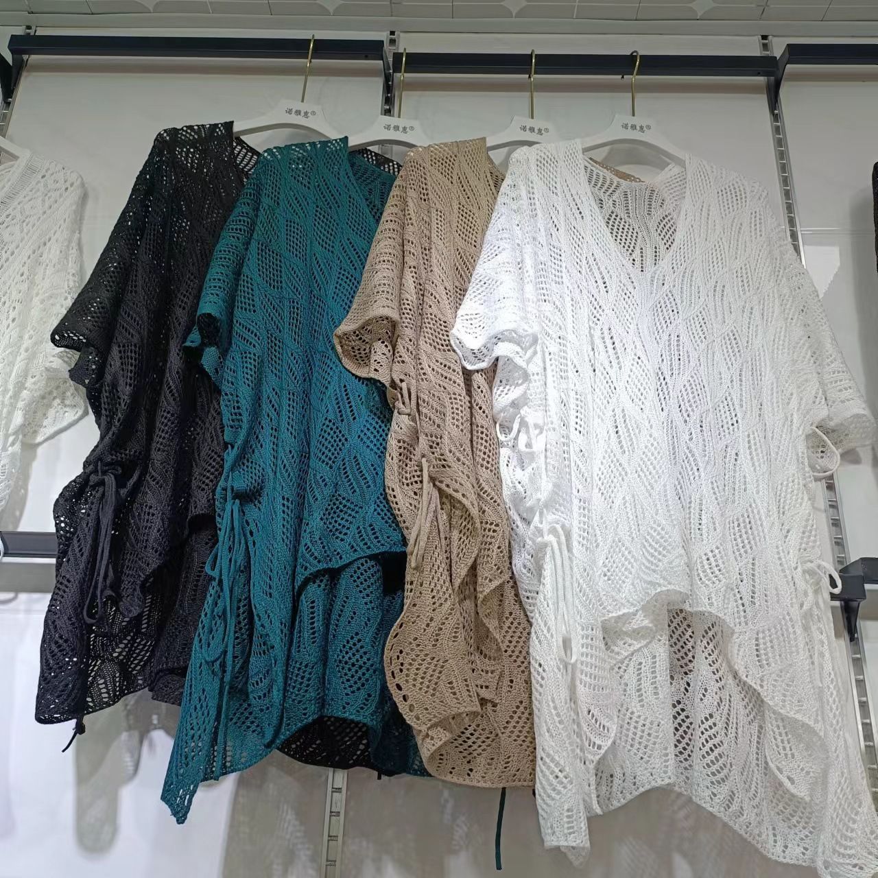 新作半袖韓国風透かし編みカーディガンニットセーター、おしゃれで万能、ピュアでセクシーなスタイル、着痩せ効果のあるカジュアルトップス