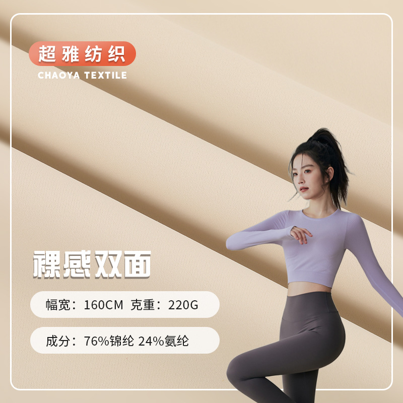 裸感锦双面瑜伽面料 190g锦氨莱卡弹力布 运动骑行服瑜伽服面料