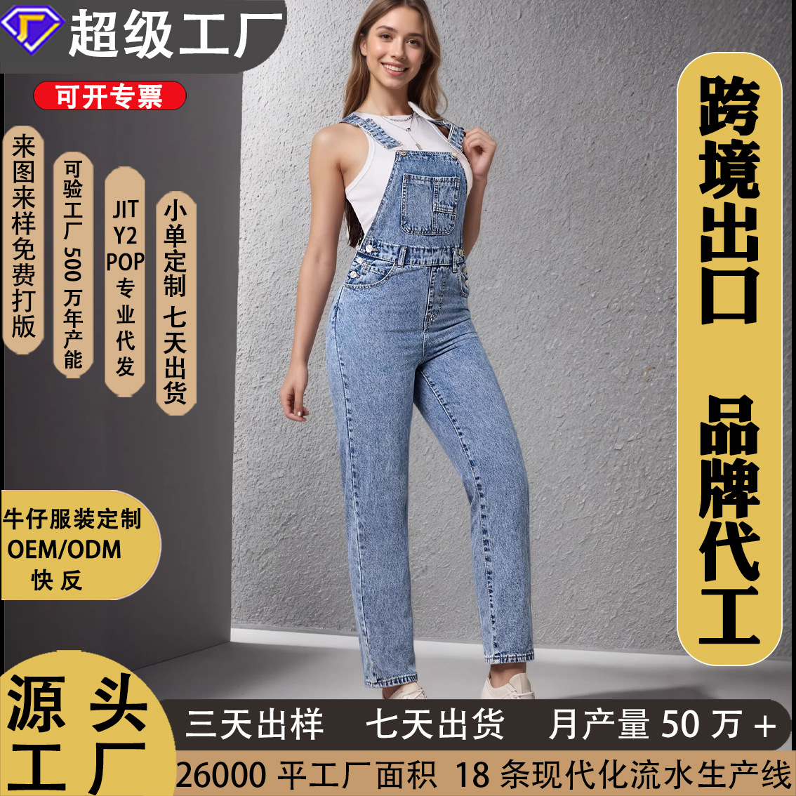 亚马逊爆款夏季欧美标码无弹牛仔背带裤美式复古宽松显高现货批发