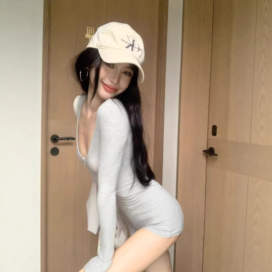 美式辣妹紧身长袖连体短裤女秋冬高腰包臀裤子健身运动休闲连衣裤