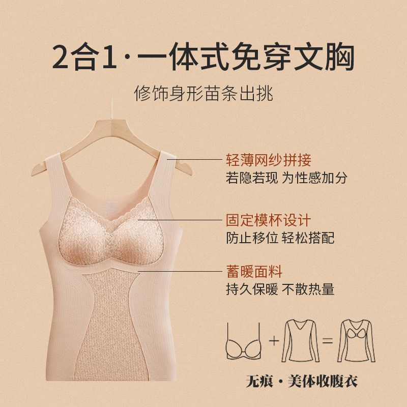 女性用シームレス両面起毛サーマルベスト、厚みのあるオールインワン、ブラなし、胸パッド付き下着、外でも着用可能