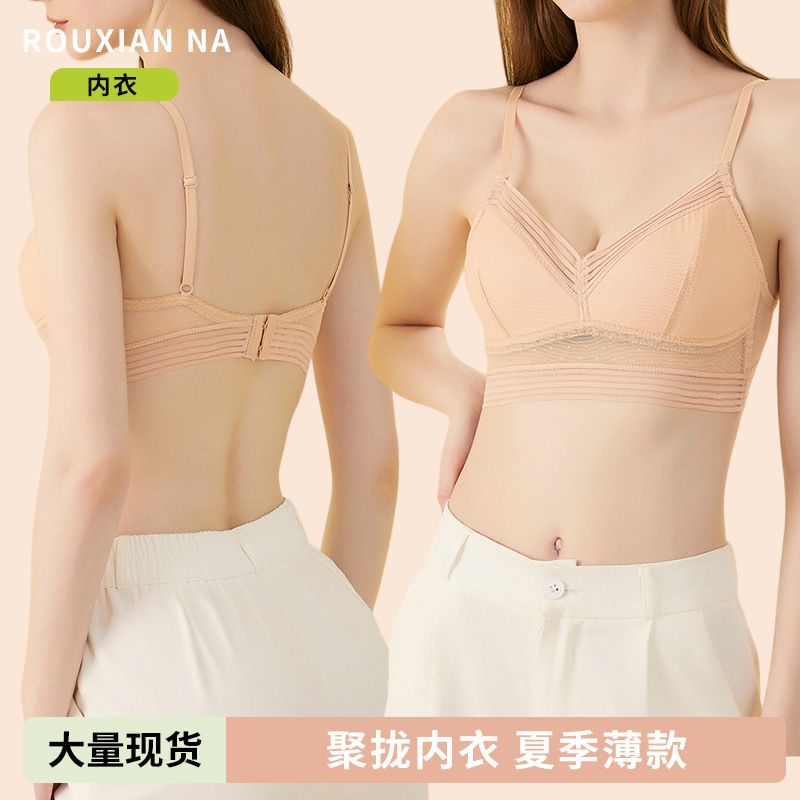 ノンワイヤー、大きな胸、セクシーな背中開き、美しい背中、U字型ブラジャー、夏用ワンピース薄型下着、大きな胸を集める女性用