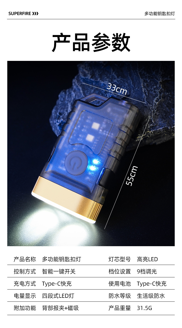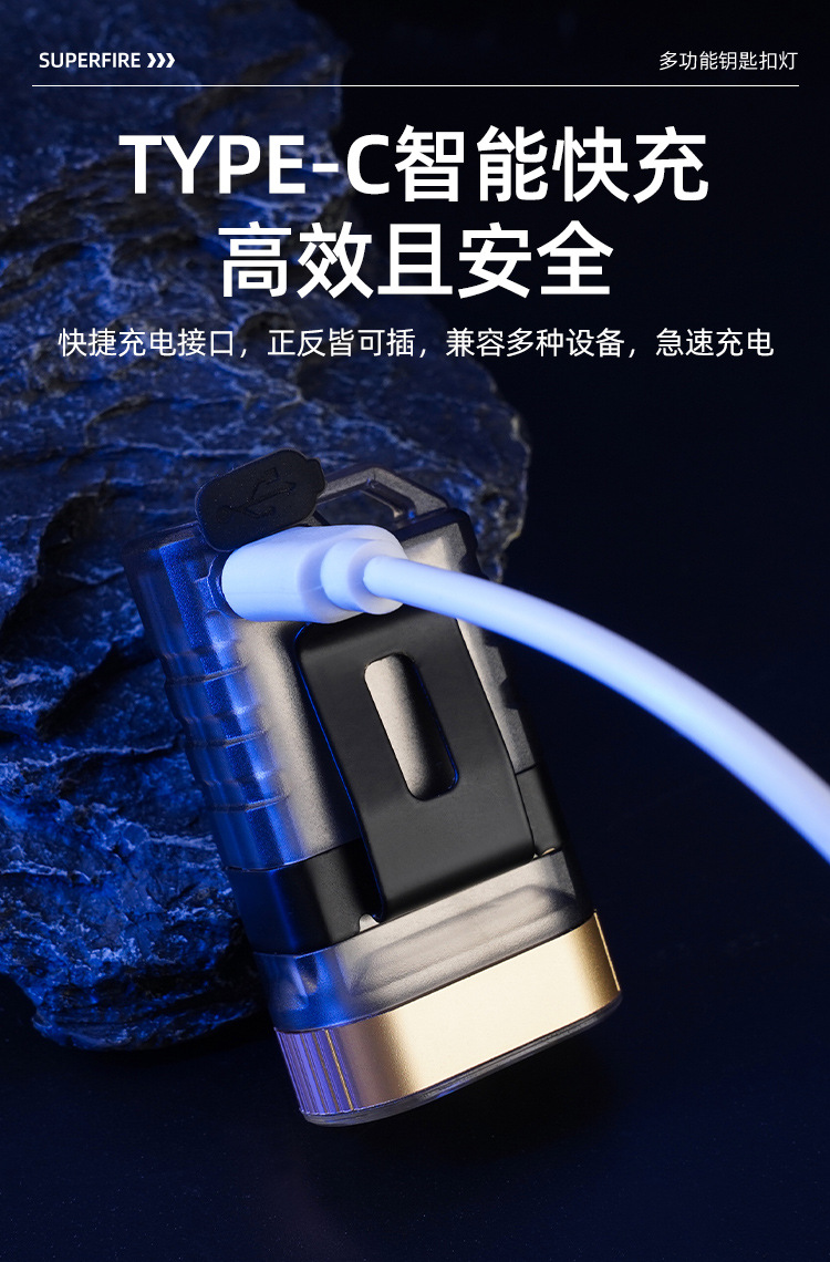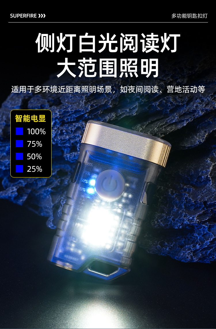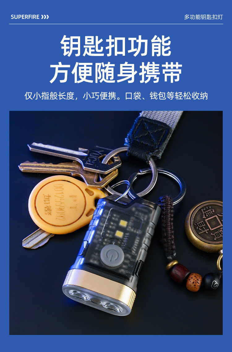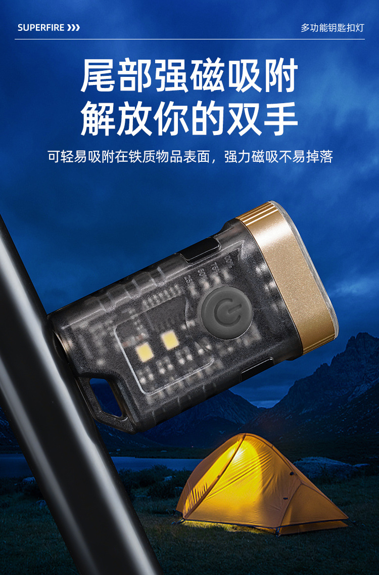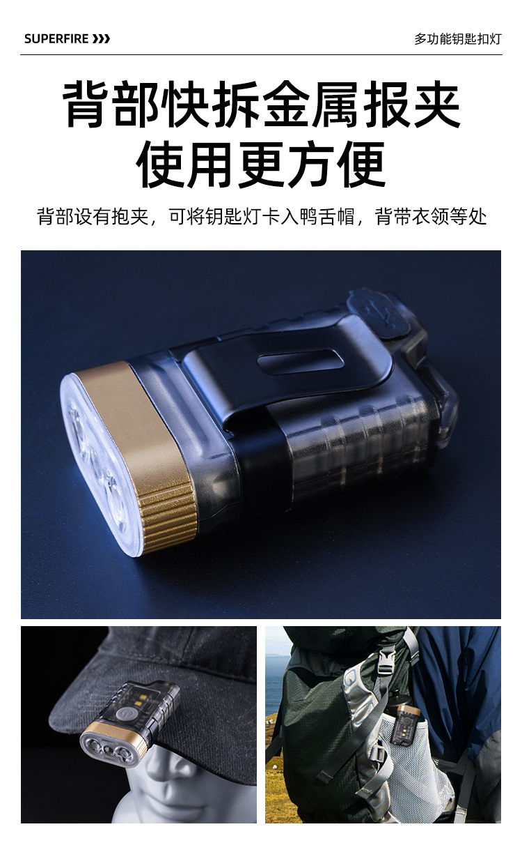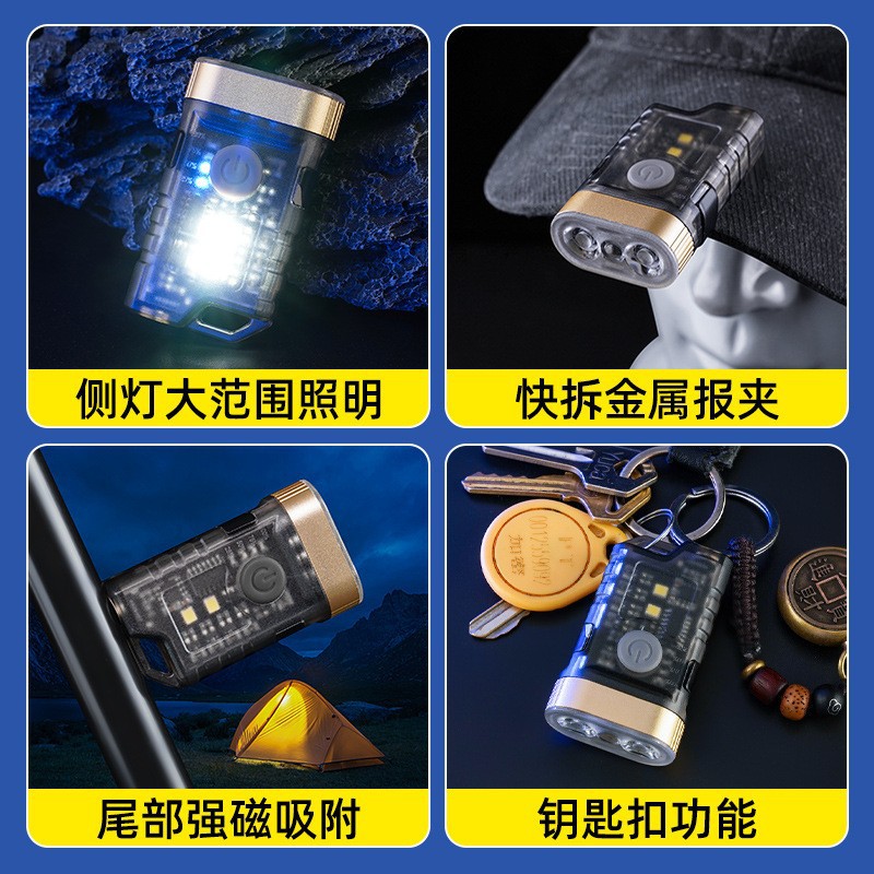 国境を越えた帽子はヘッドライトの多機能キーホルダーを持っています。