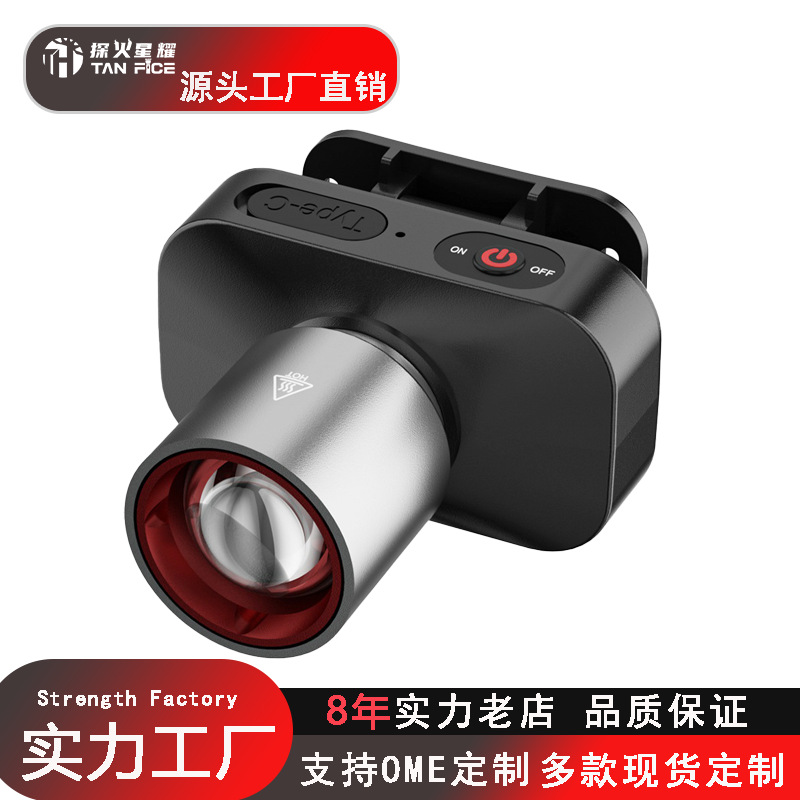 热销新款户外头灯伸缩变焦多功能头灯头戴式家用可充电夜钓钓鱼灯