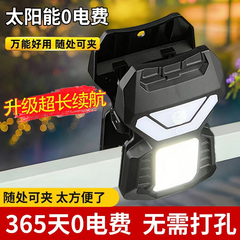 新款户外太阳能灯庭院灯夹子灯人体感应壁灯围栏照明夹子灯安防灯
