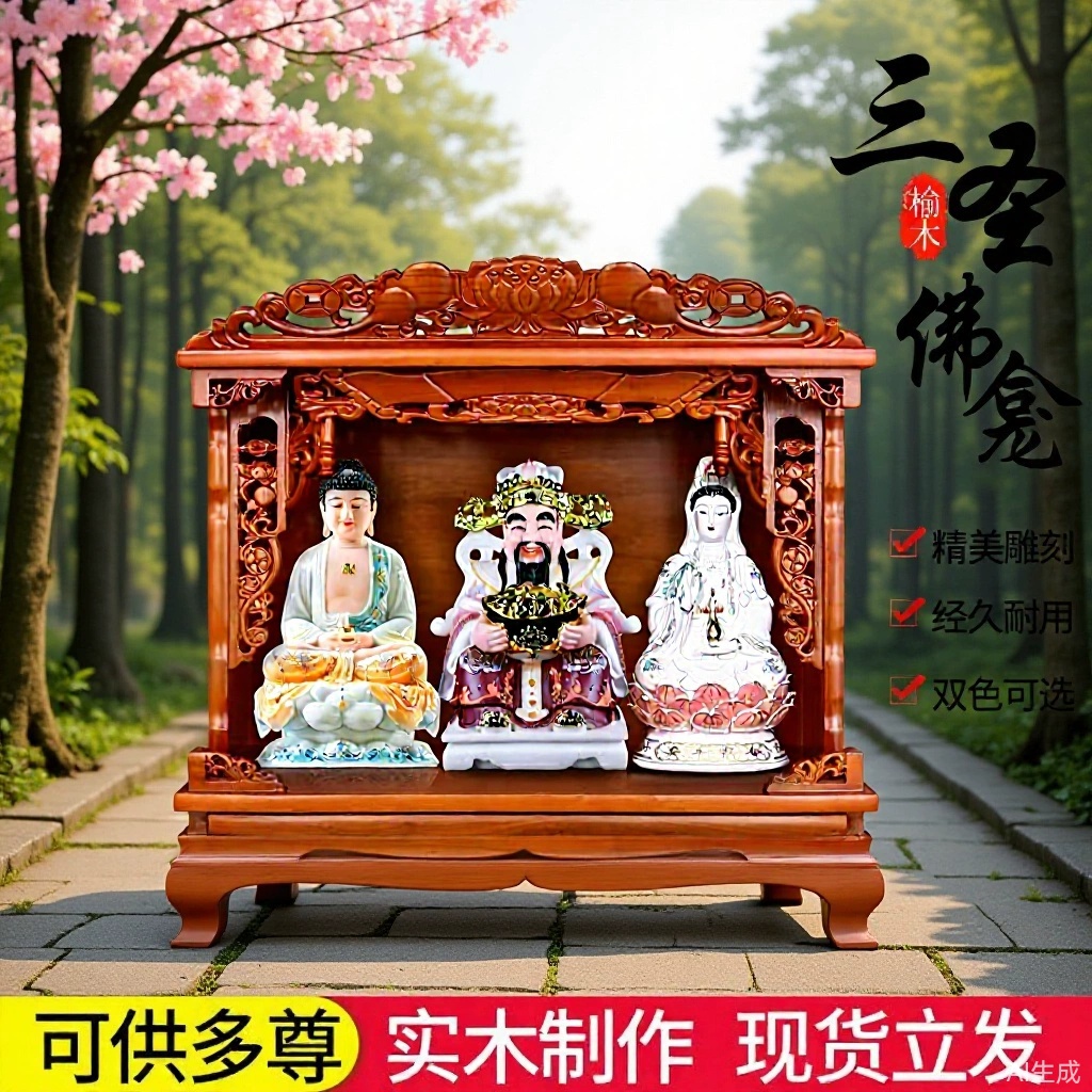 家用佛龛墙壁挂实木供台神龛三圣财神爷佛柜观音供桌佛神台柜神像