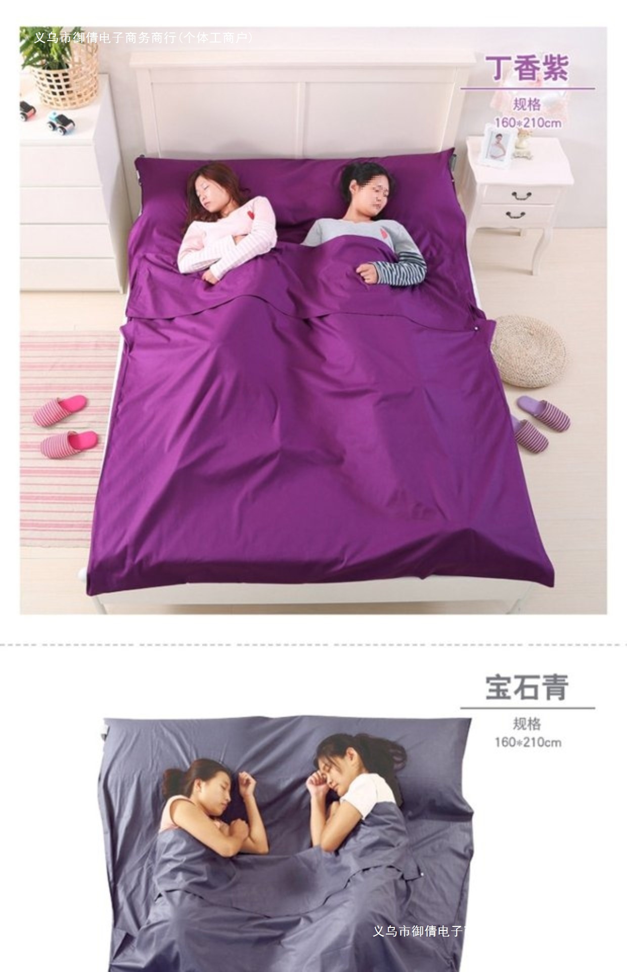 クラスAサテン100防塵寝袋ホテル出張ポータブル4点セット純綿ダブルトラベルスリーピングバッグ