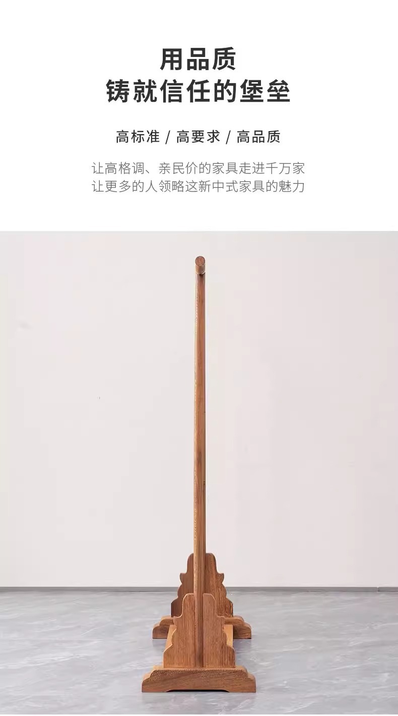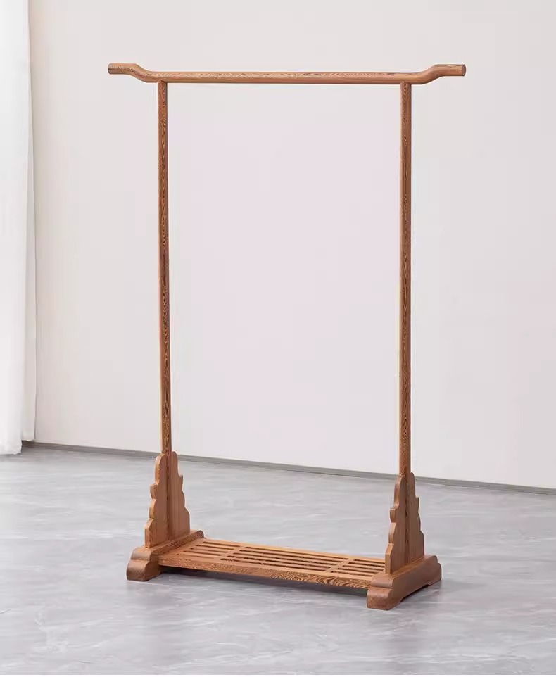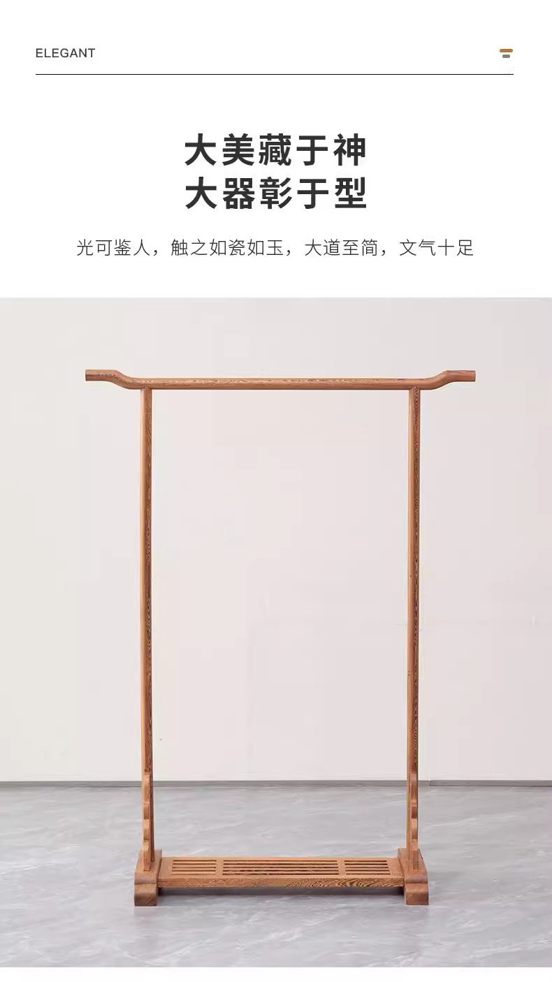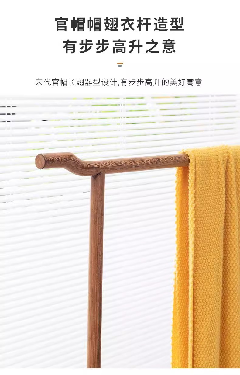 芸銘の天下の手羽先の木の服の帽子の棚の新しい中国式の実木の服はハンガーの赤い木の地面にぶら下がって支えます。