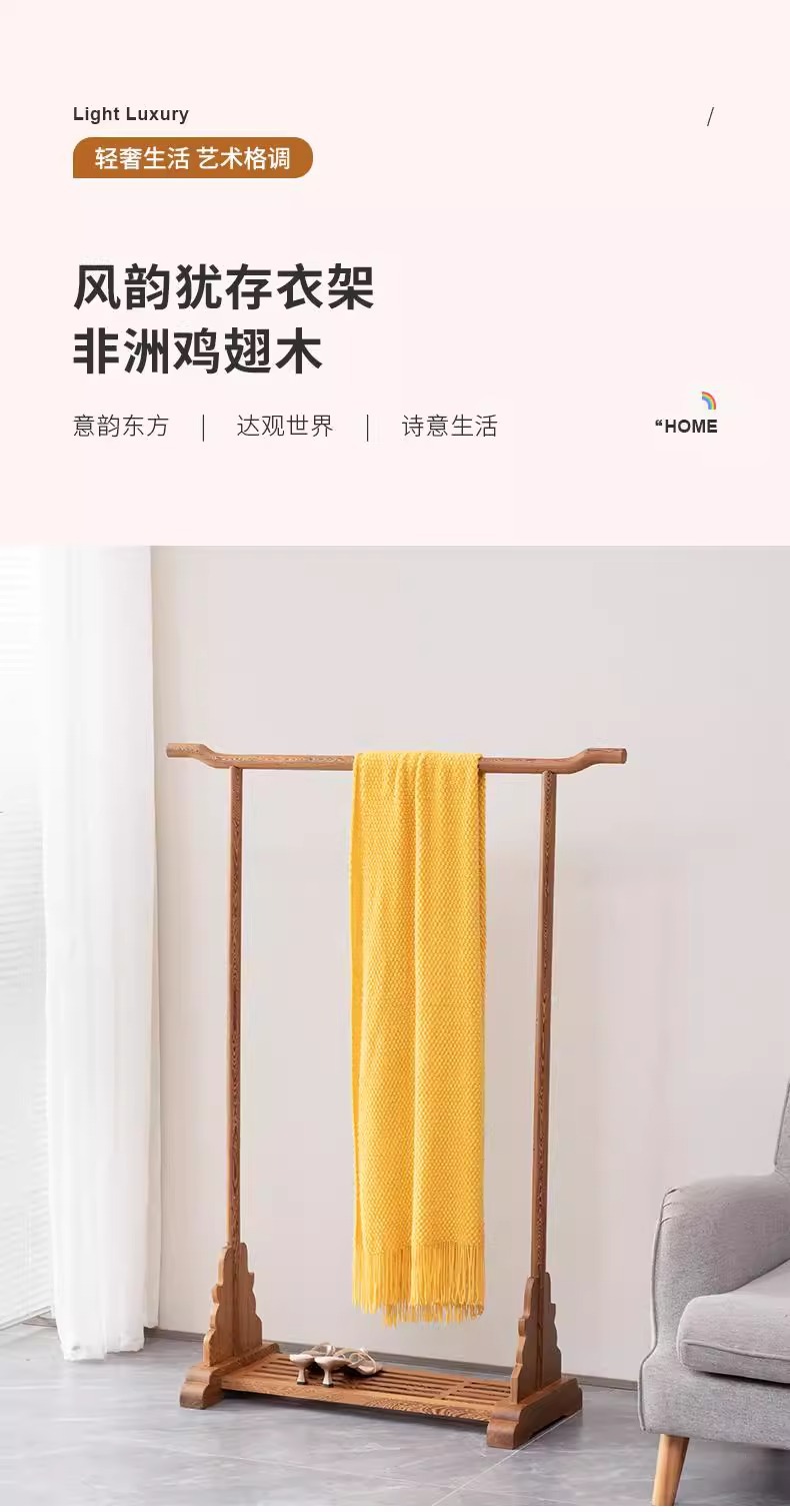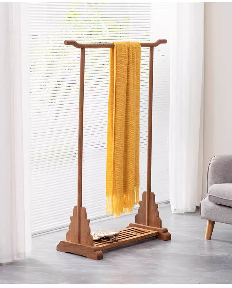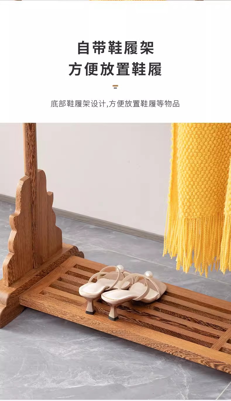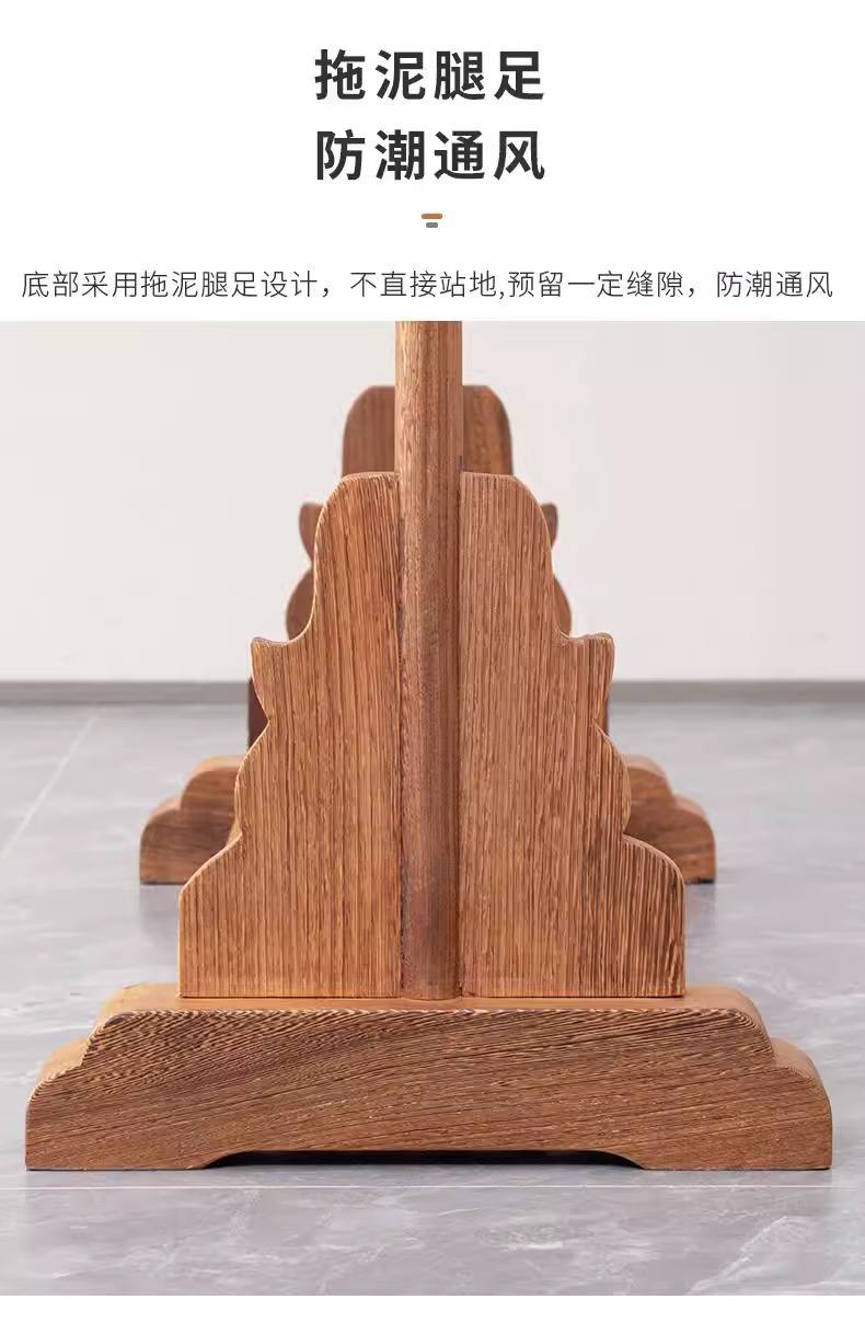 芸銘の天下の手羽先の木の服の帽子の棚の新しい中国式の実木の服はハンガーの赤い木の地面にぶら下がって支えます。