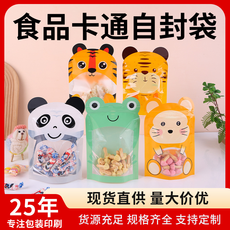漫画動物異形パターン包装袋透明自立ジッパー袋ビスケットキャンディー食品プラスチック包装袋
