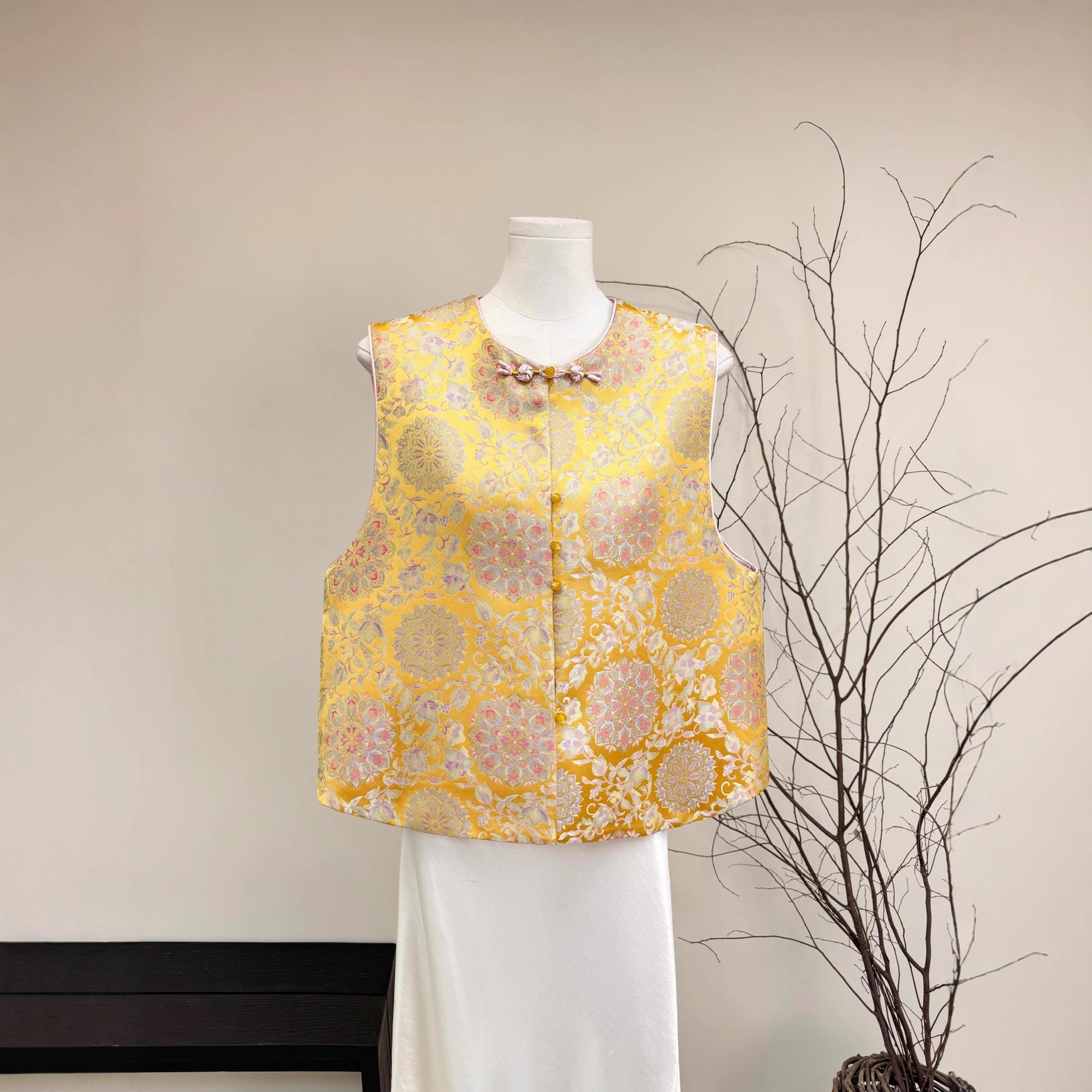 新中華風デザイン八達紋ベスト2025春新作民族風カミソリベスト盤扣織錦春物ベスト