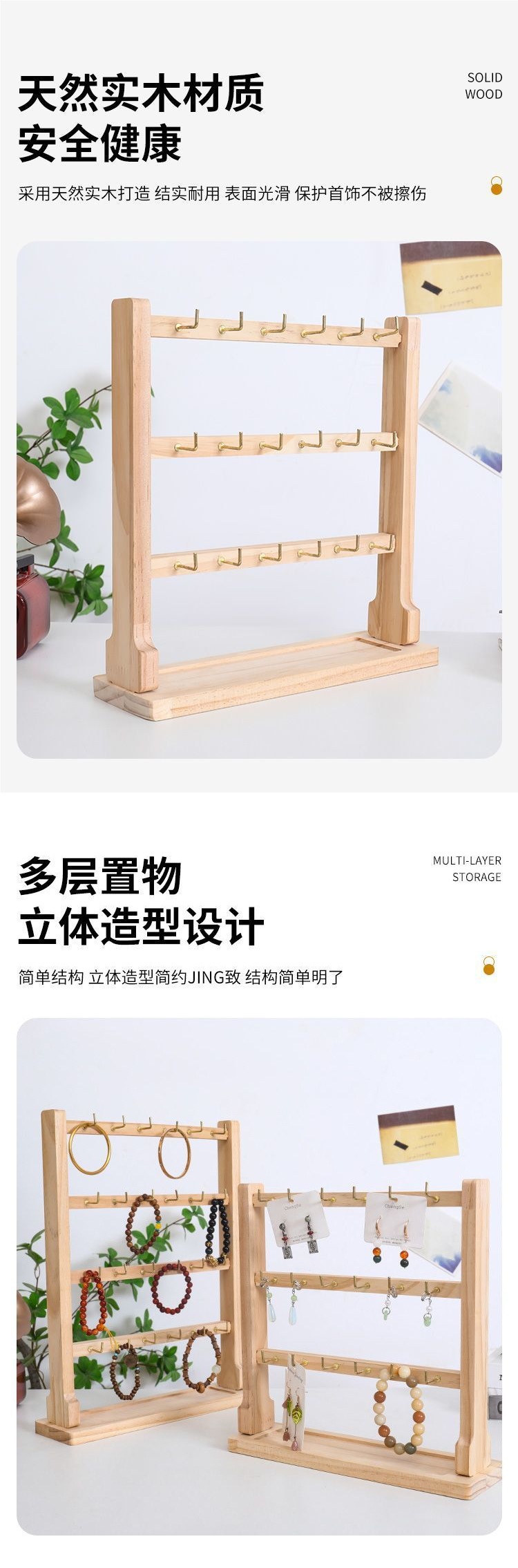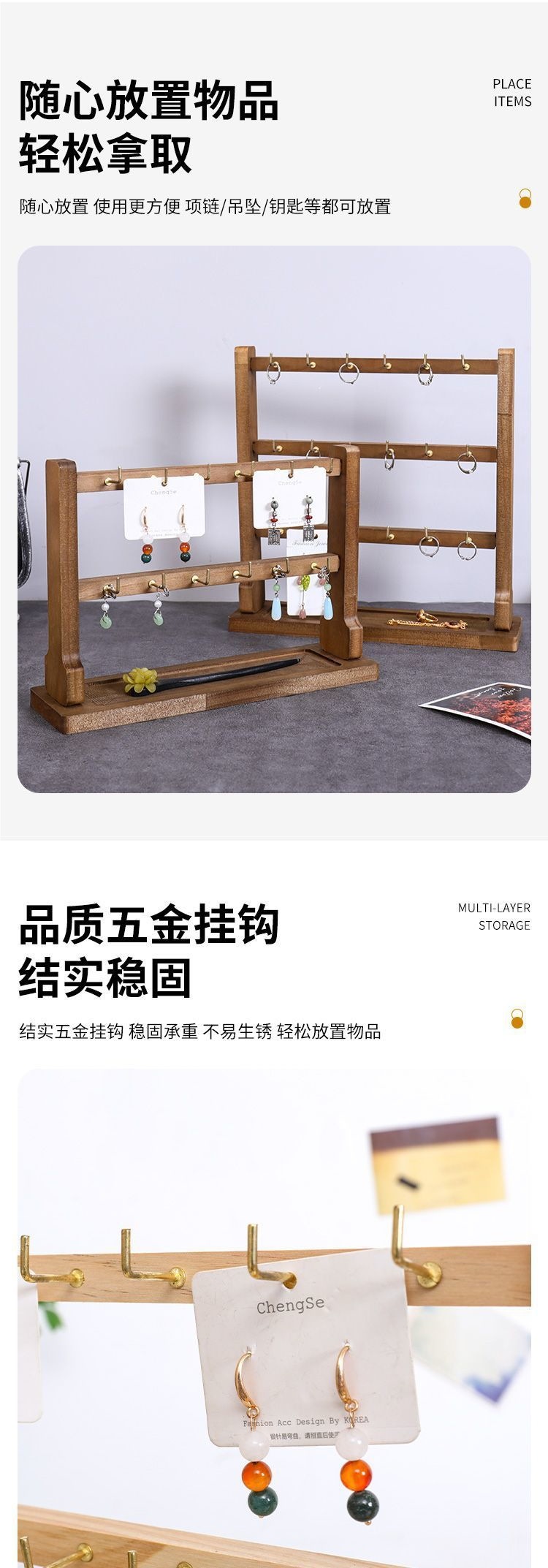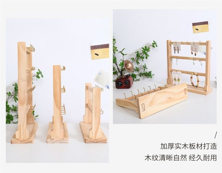 実木アクセサリー露店展示棚小物掛けフックイヤリング展示棚リップクリームキーホルダー収納棚