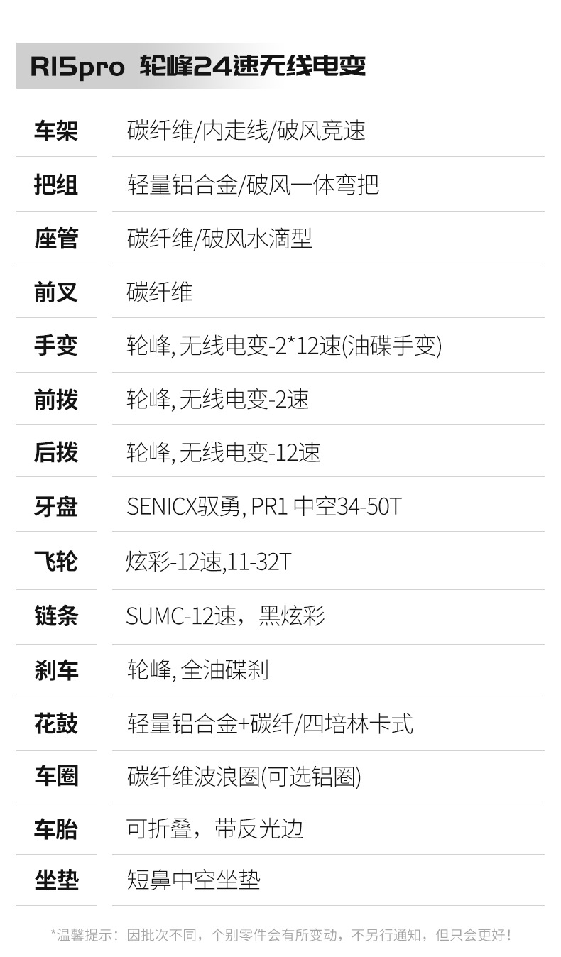 R15pro-三代-轮峰24速电变油碟波浪碳圈一体铝把