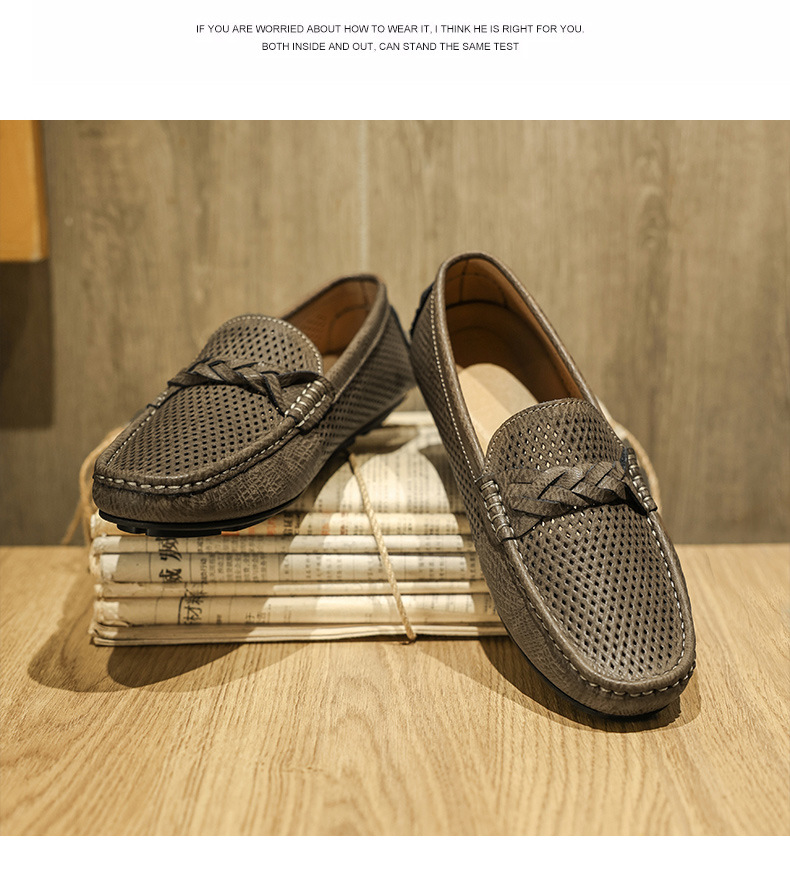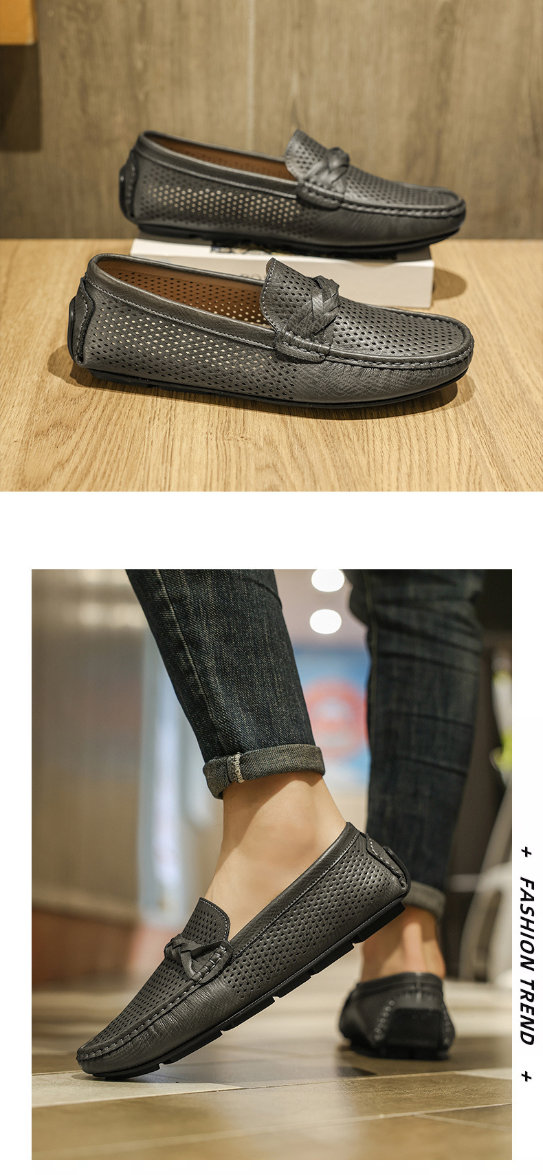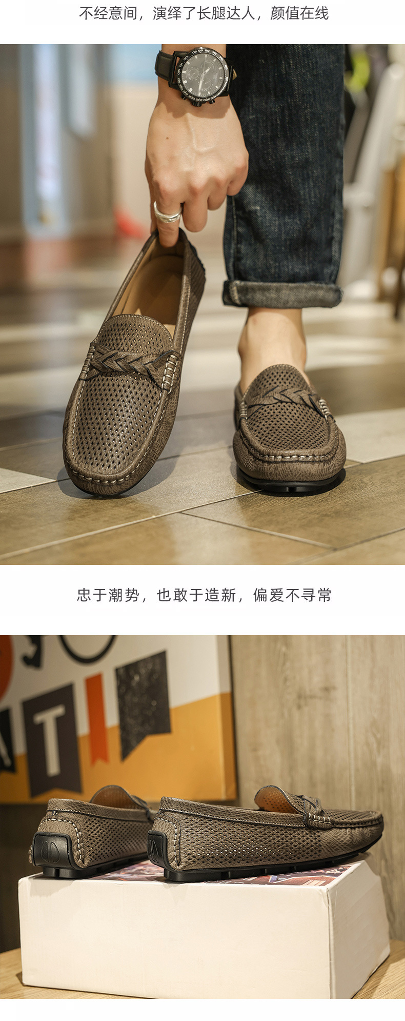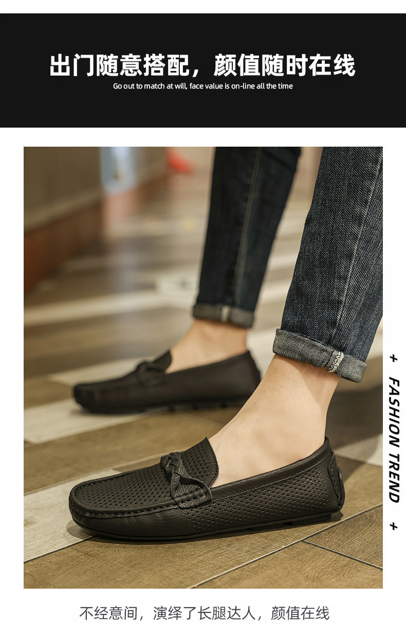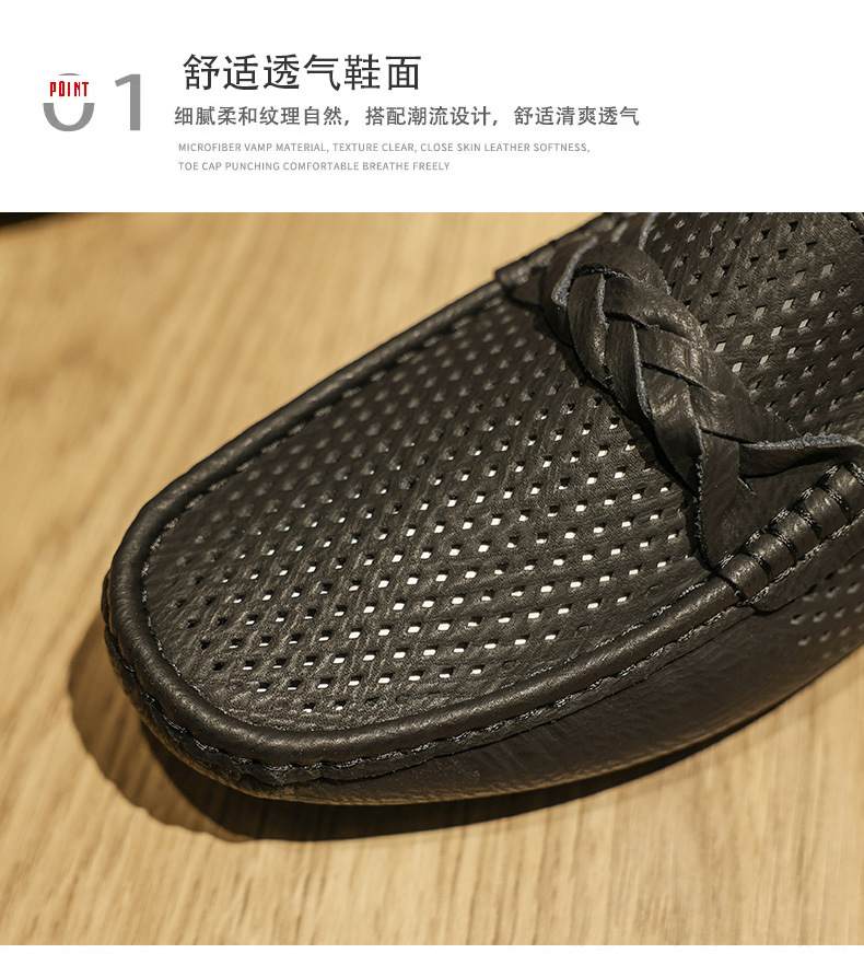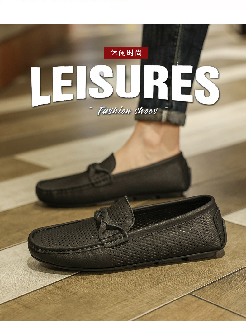 Large size472025夏の本革豆の靴怠け者の透かし彫りの通気性のカジュアルなgenuinエレザー
