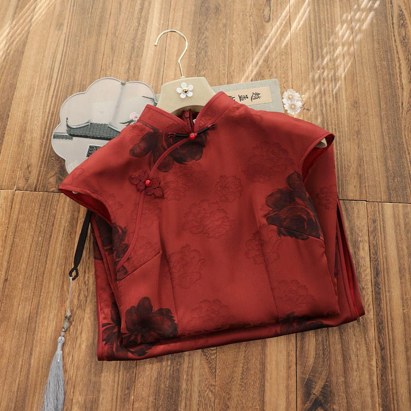 美しい娘の魚の赤い復古風の三日月の袖のチャイナドレスの2025年の春の新型の改良の新中国式は試験を出して人気があります。