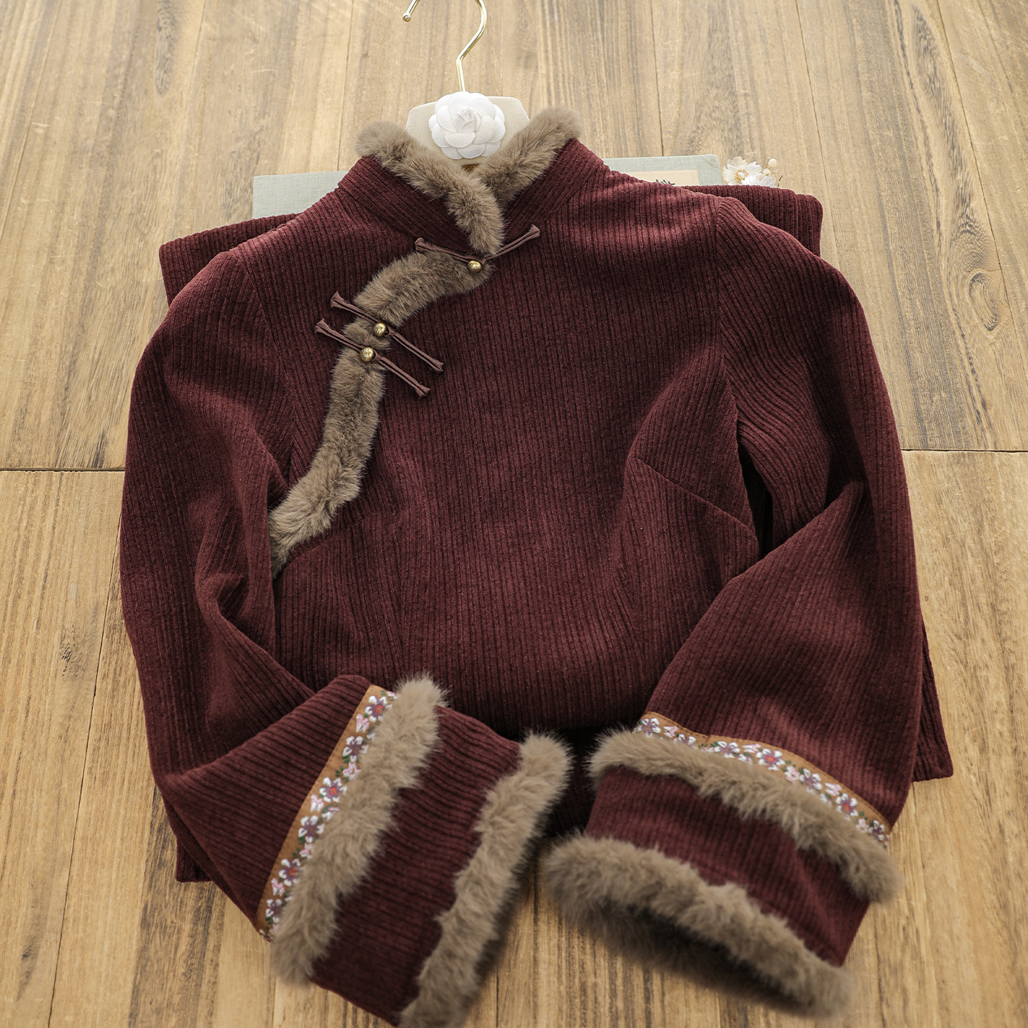 俏娘鱼紫色复古新中式旗袍马甲两件套2025冬新款保暖毛绒领年轻款