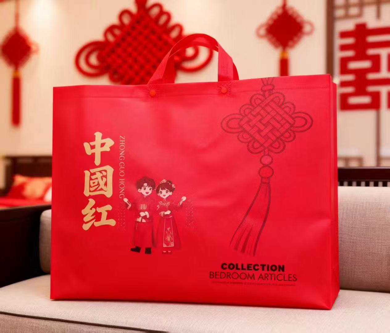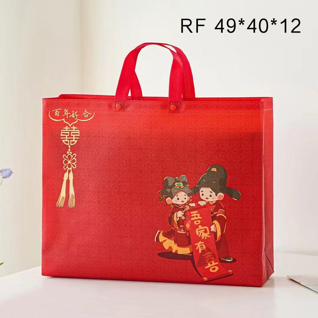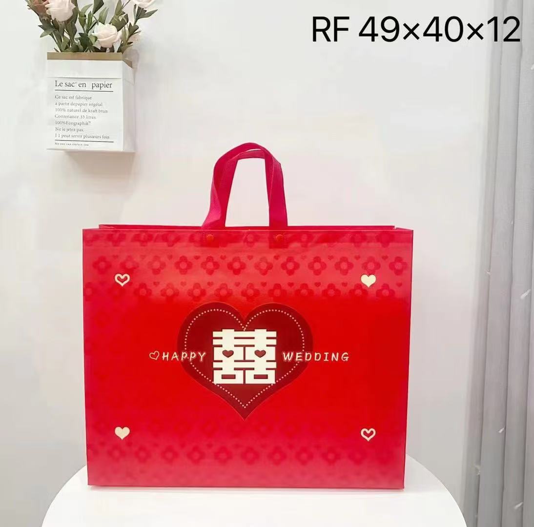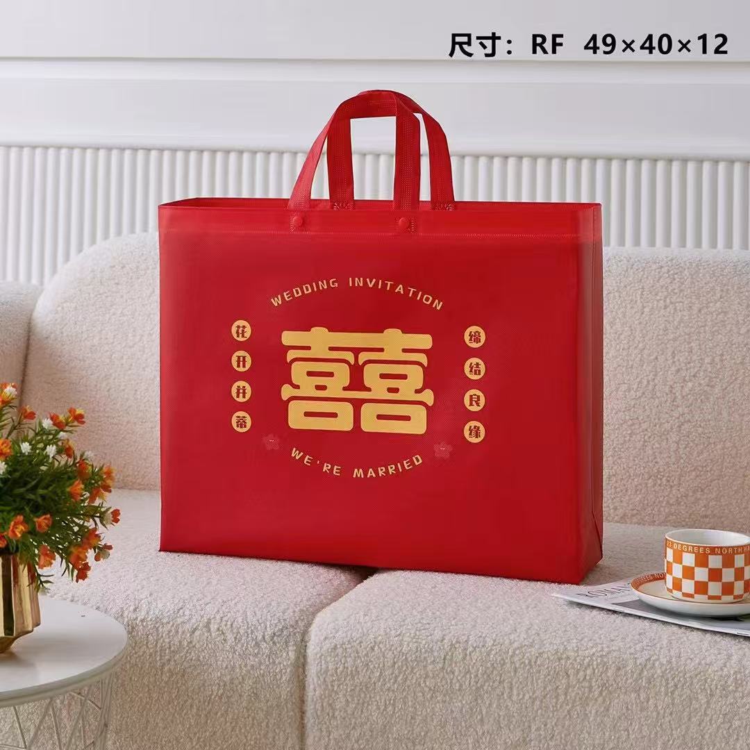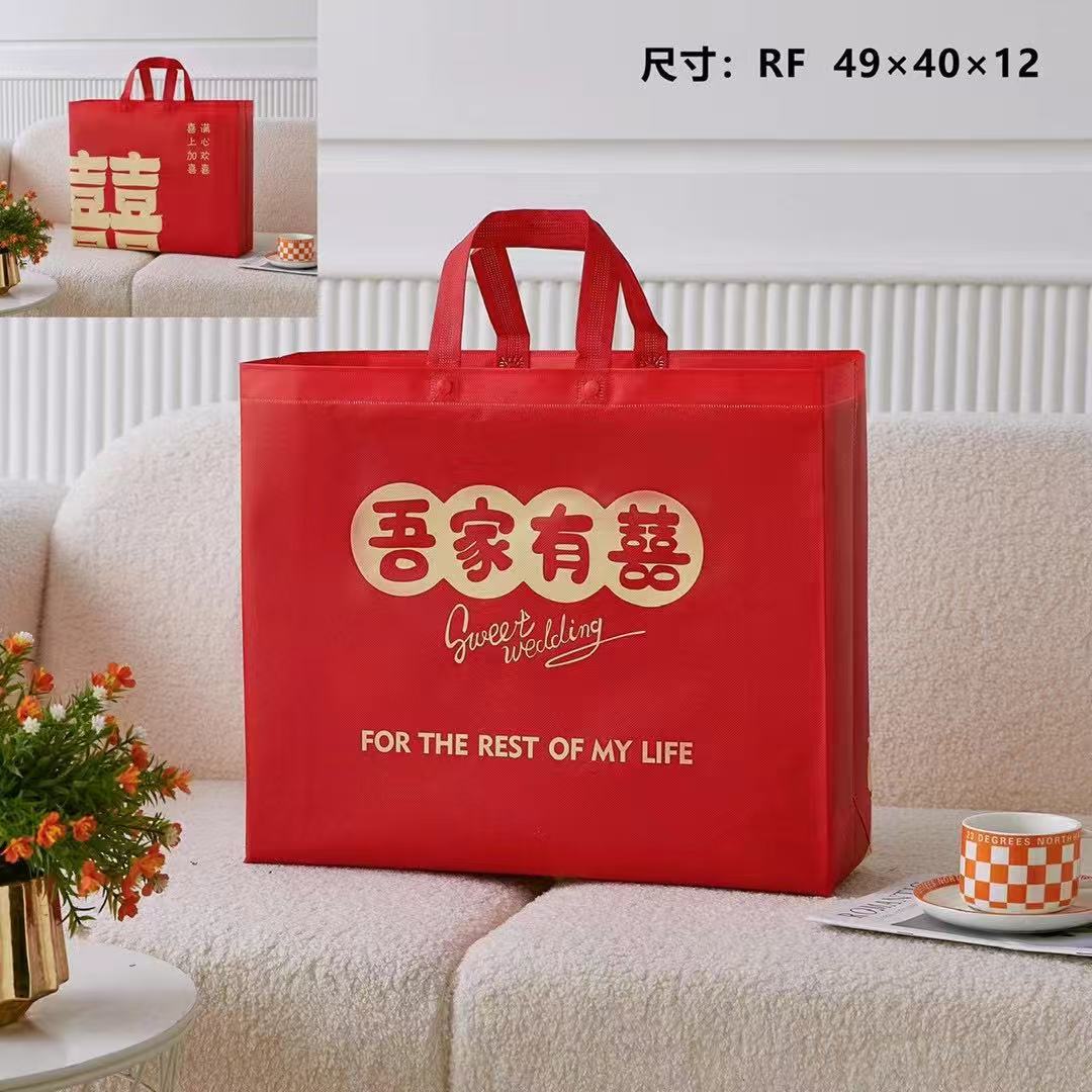 4点セット手提げ袋結婚祝いギフトバッグ家紡織包装不織布袋大赤色専用袋環境保護レジ袋