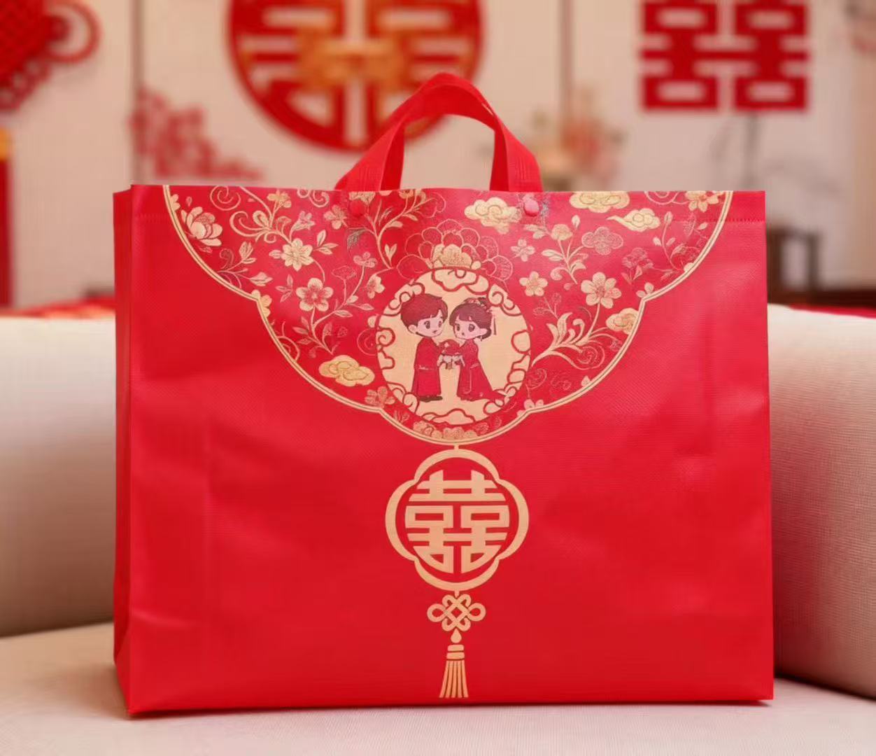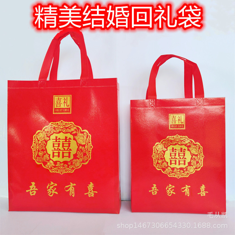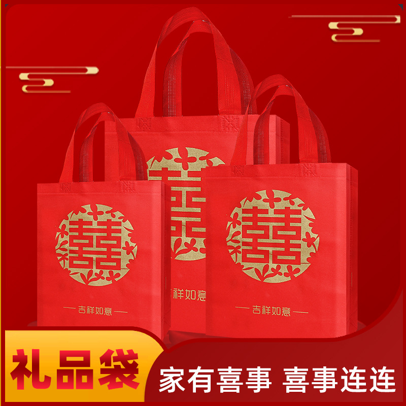 赤い双喜ギフトバッグ喜糖袋タバコ茶酒袋ギフトバッグ不織布手提げ袋エコバッグ