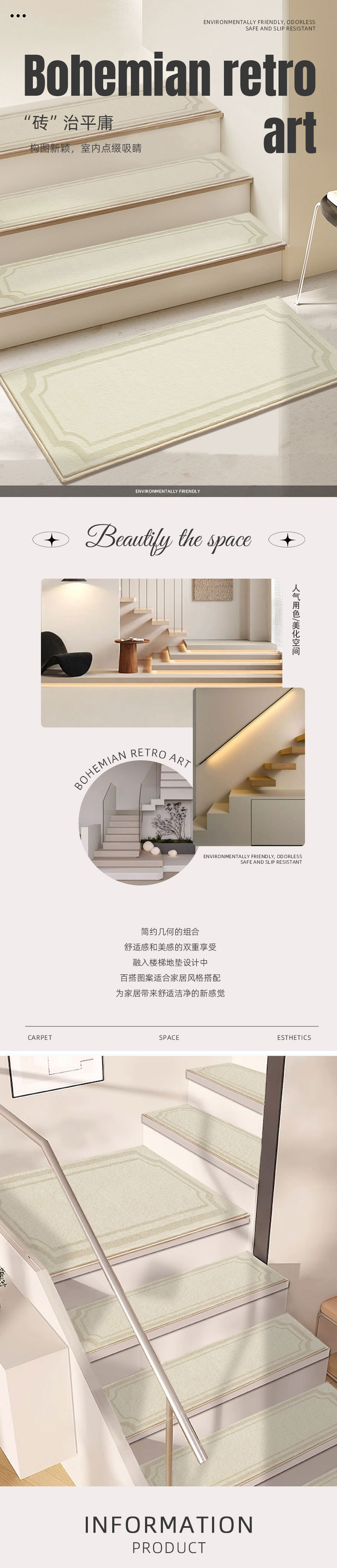 简约奶油风可水洗硅藻泥楼梯垫室内台阶消音吸水防滑旋转踏步垫子