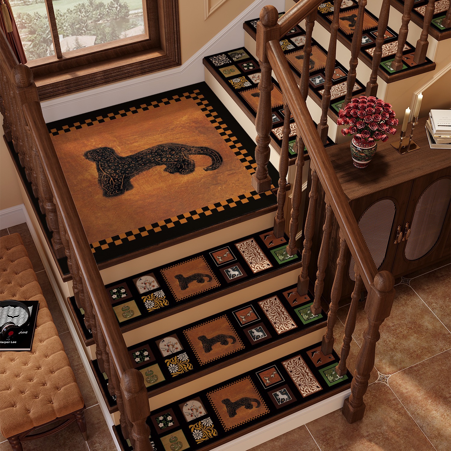 楼梯踏步垫中古风免胶自粘防滑隔音地毯复式实木楼梯台阶改造地垫
