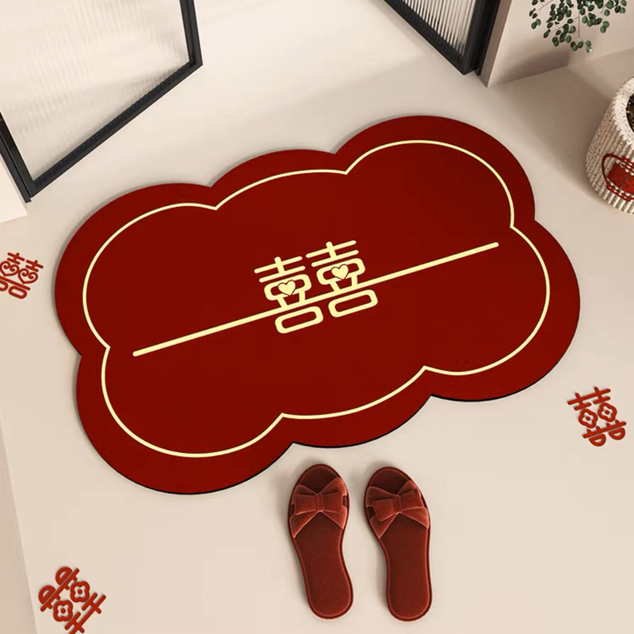 結婚式のバスルームフロアマット、吸水性、滑り止め、家庭用珪藻泥フットマット、汚れ防止、拭き取り可能、洗濯不要、赤いお祝いフロアマット