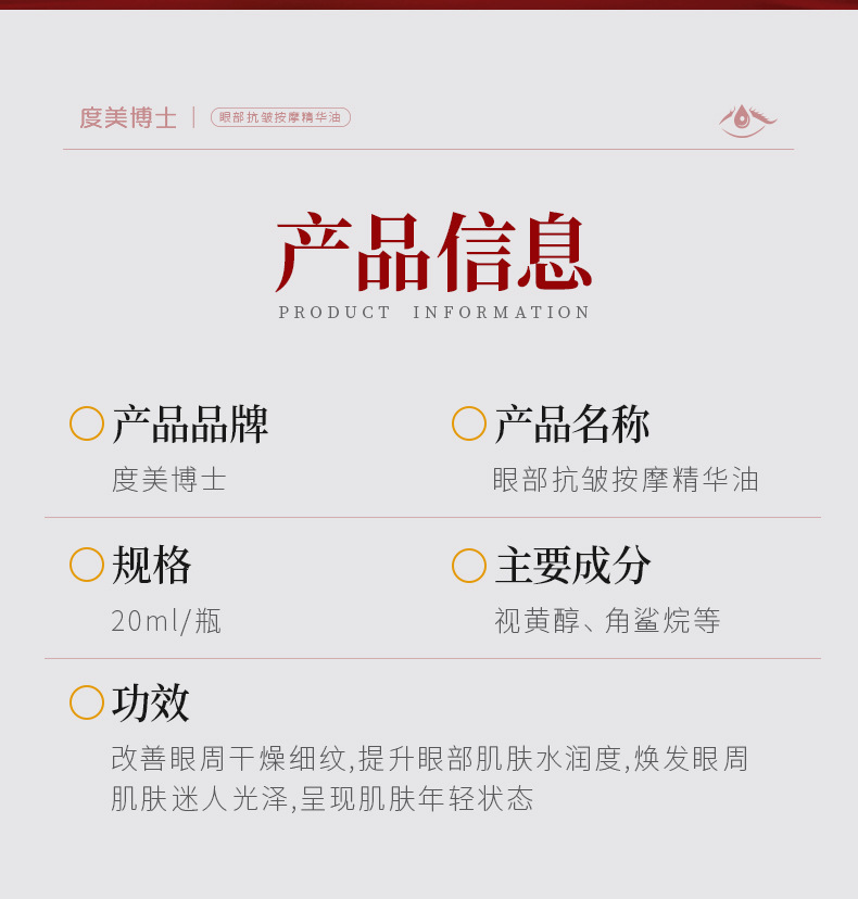 製品仕様 アイ アンチリンクル マッサージ エッセンス オイル 20ml