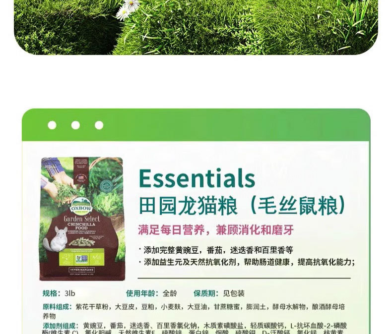 アメリカから輸入されたOXBOW愛宝龍猫食糧龍猫主食糧龍猫食糧愛宝田園龍猫食糧全年齢段