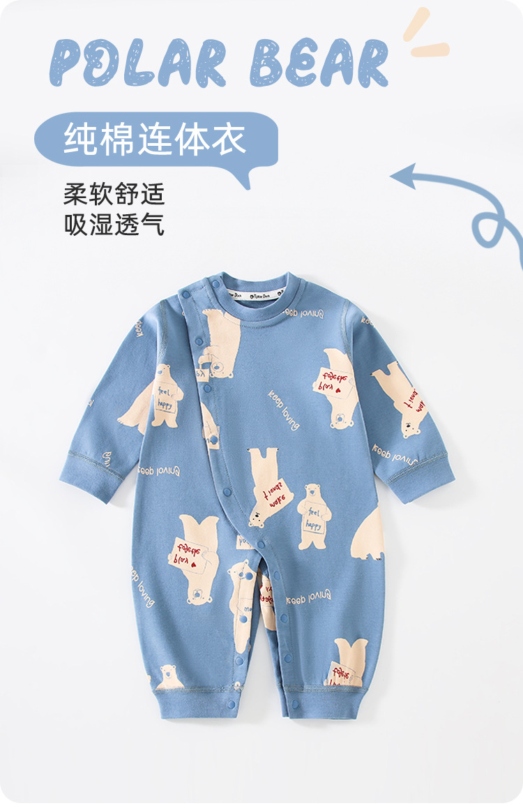 婴儿连体衣春秋a类长袖新生儿连身爬服韩版宝宝衣服舒绒婴儿衣服