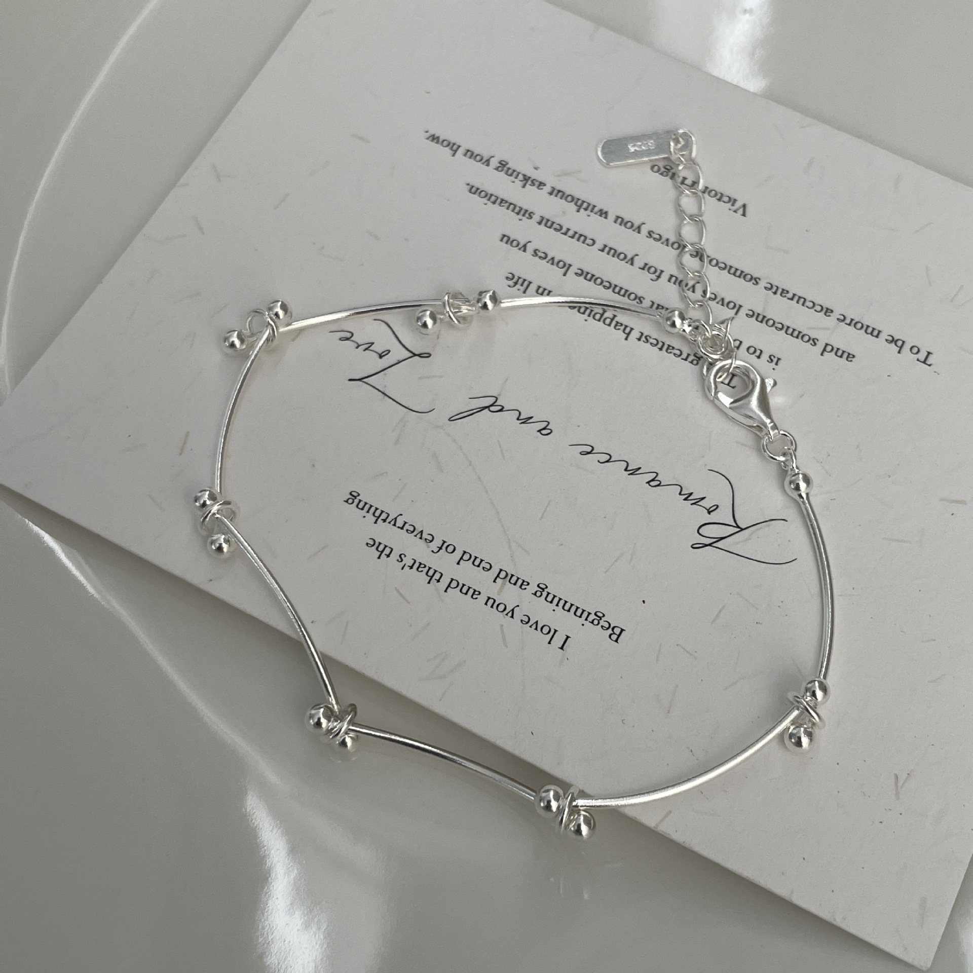S925纯银韩版小众设计感弹力绳简约双层弯管手链韩式风时尚首饰品