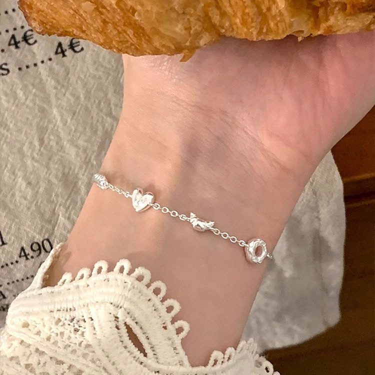 サイナS925純銀立体愛ブレスレット女性大衆デザイン感シンプル冷清感INS幾何学手飾り