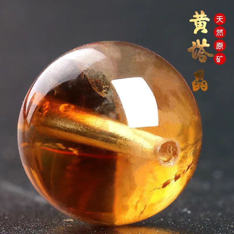 天然黄水晶黄塔晶散珠 黄阿赛塔晶圆珠手串手链女单颗diy串珠配饰
