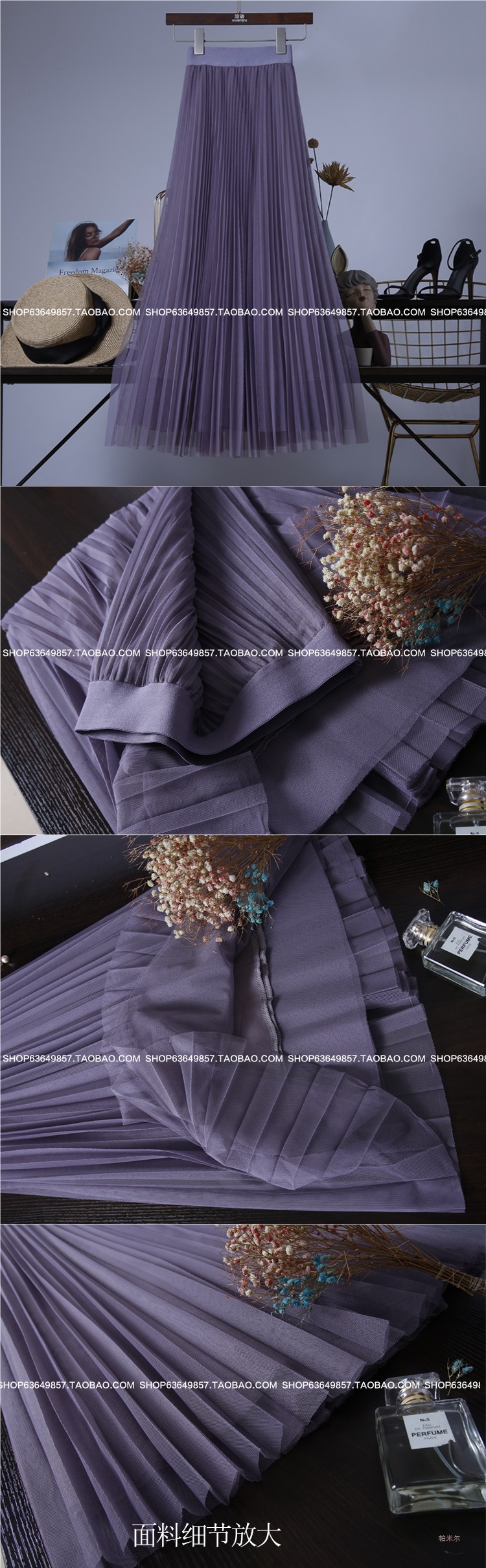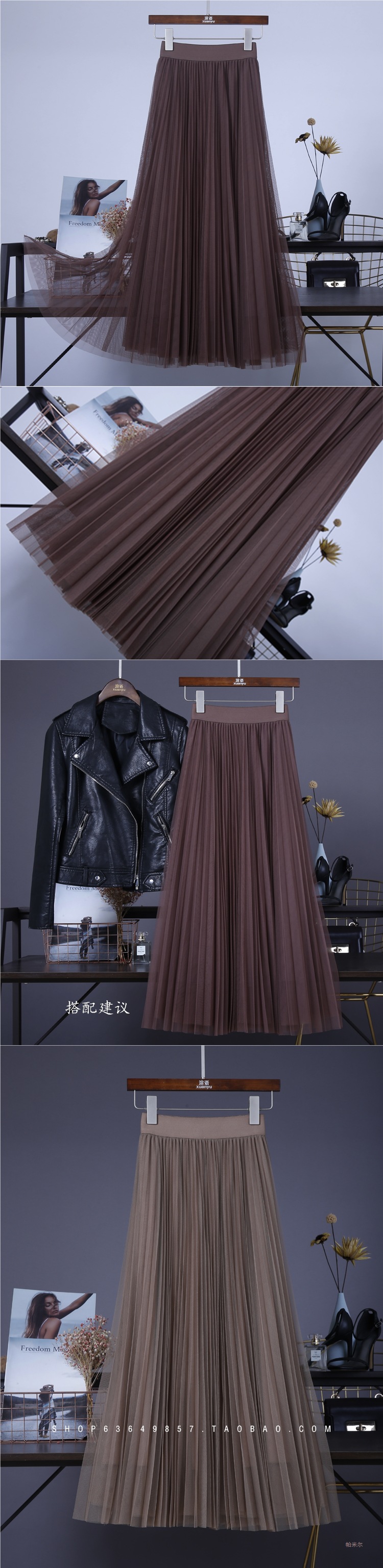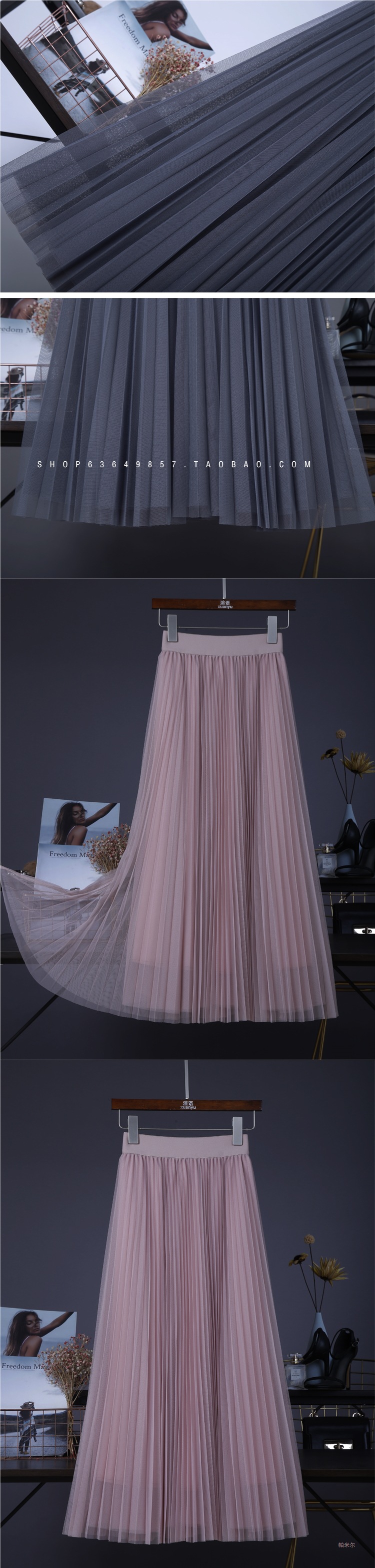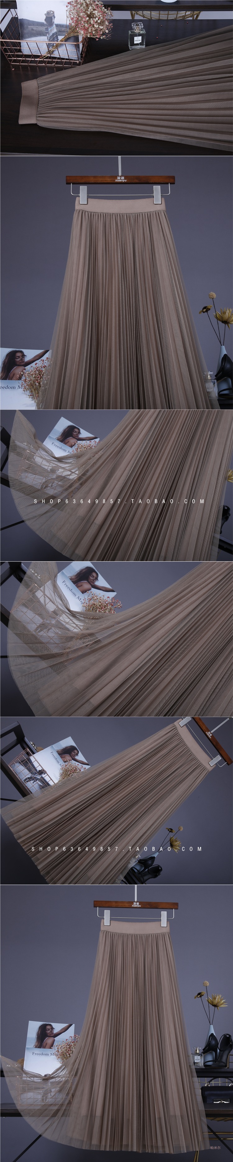 十三行澳洲网纱半身裙大摆裙高腰显瘦百褶半身裙纱裙长裙C1#1337