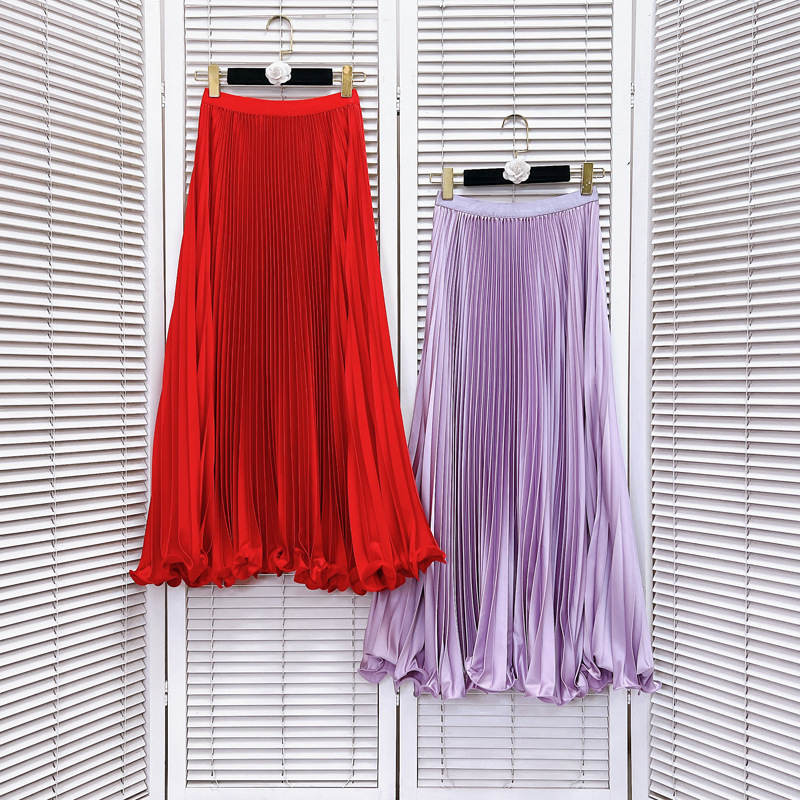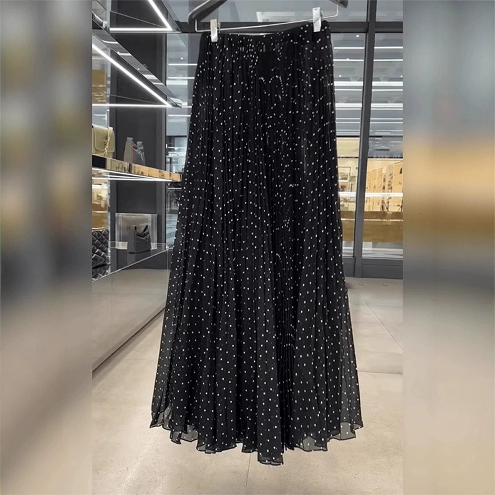 ファッショナブルでスリムな女性用プリーツスカート 2025 春夏新作ハイウエストミドル丈スカート黒水玉スカート